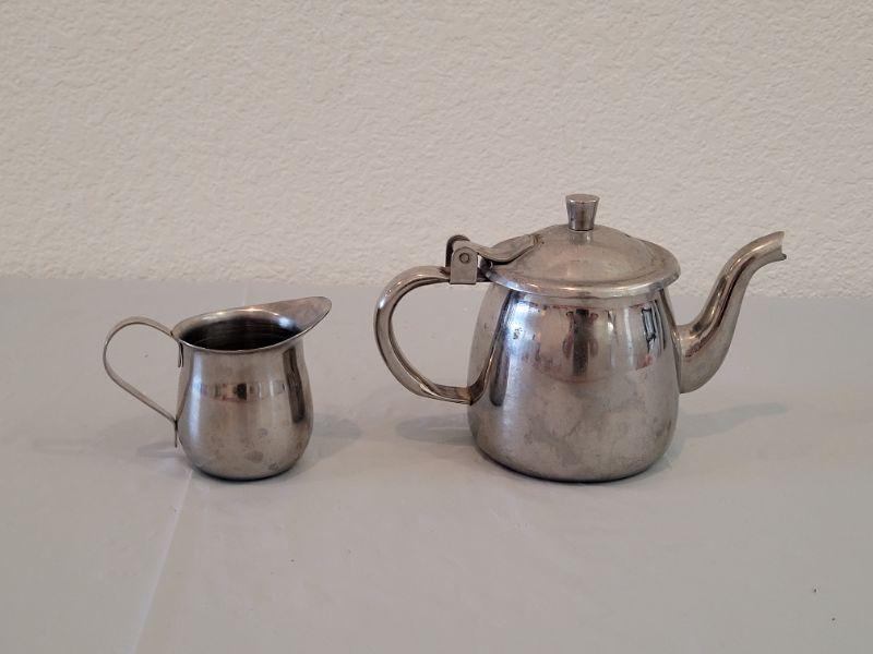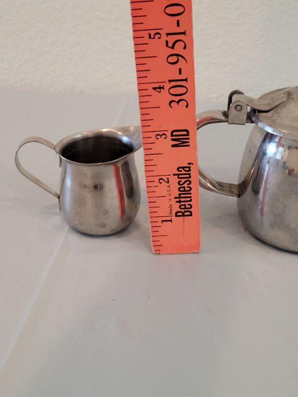 LOT 11: Vintage Stainless Small Single Cup Teapot and Creamer