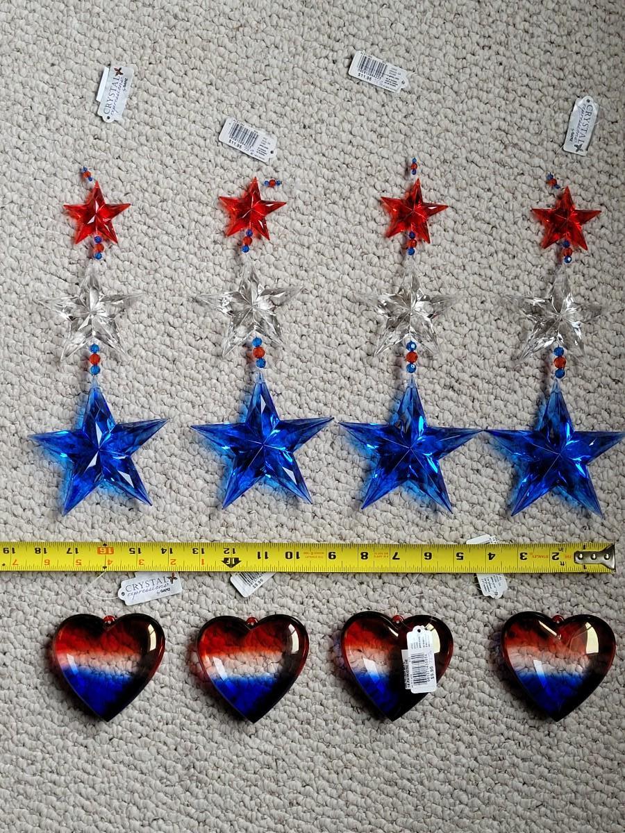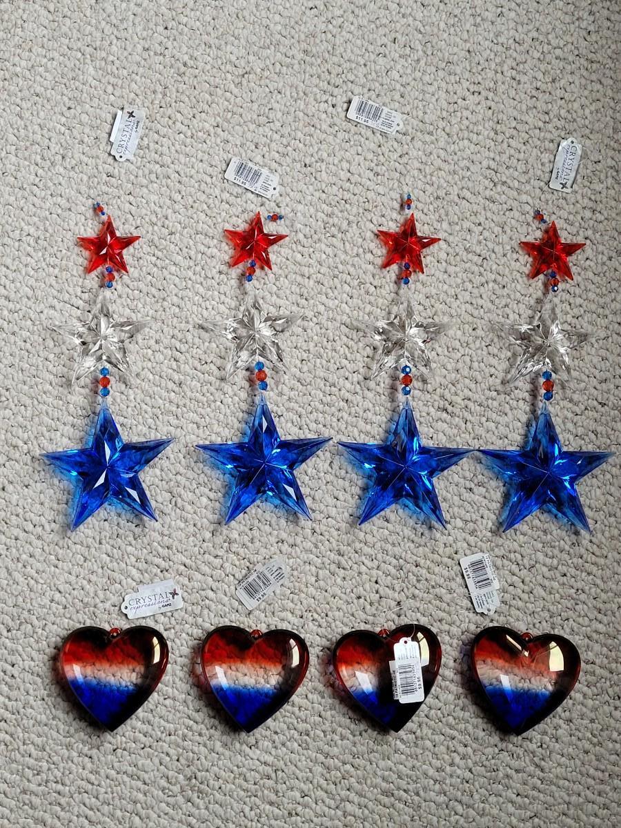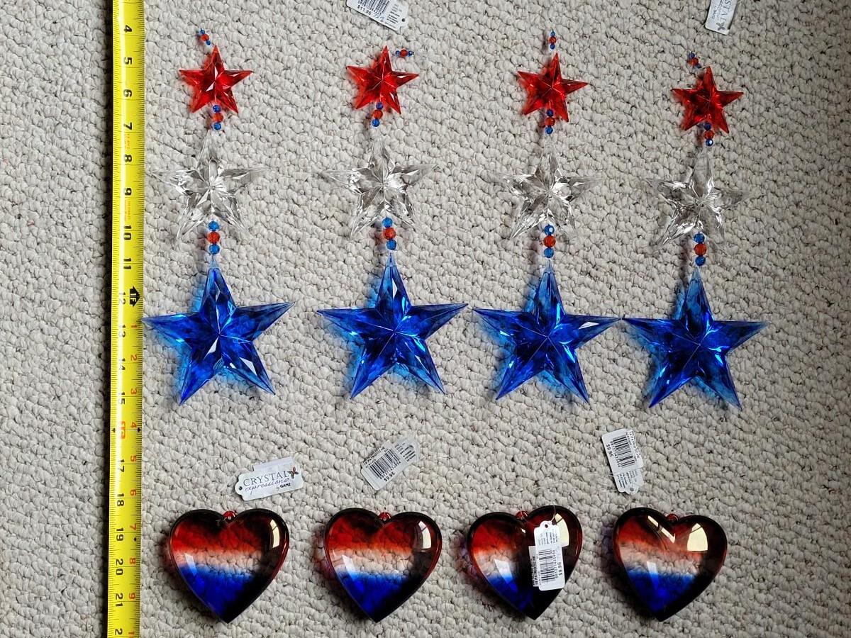 Lot 11: Red, White and Blue Hanging Decorations (4 Star Strands and 4 Puff Hearts)