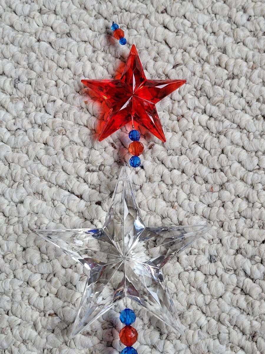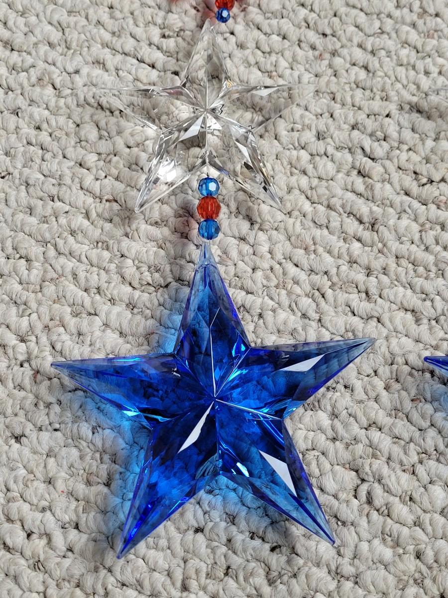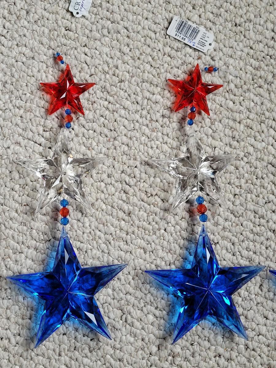 Lot 11: Red, White and Blue Hanging Decorations (4 Star Strands and 4 Puff Hearts)