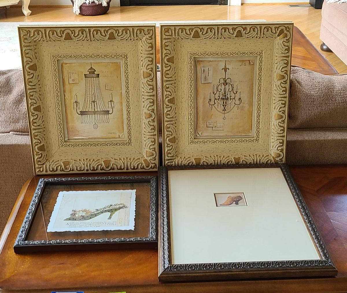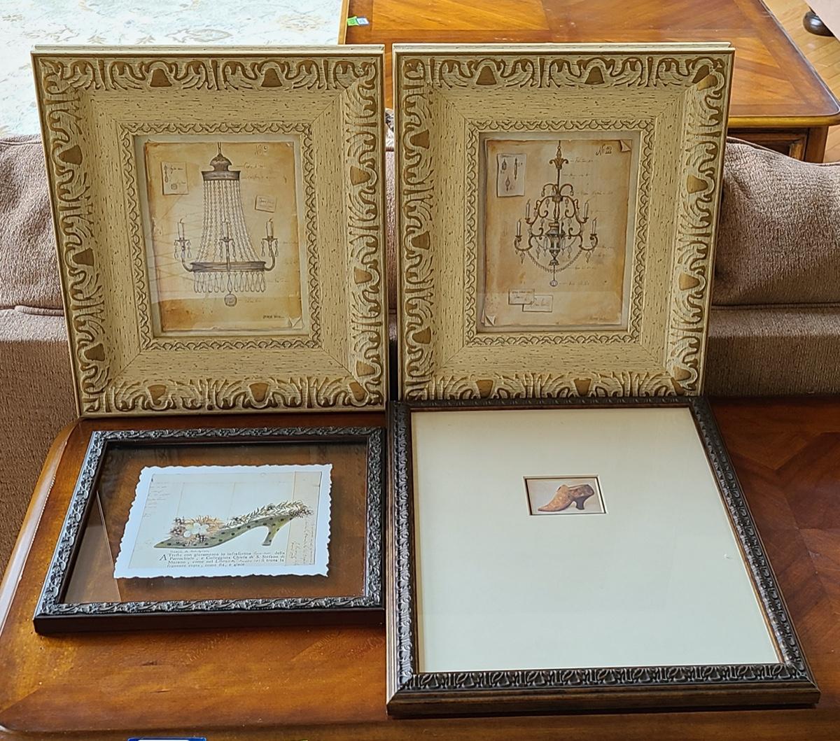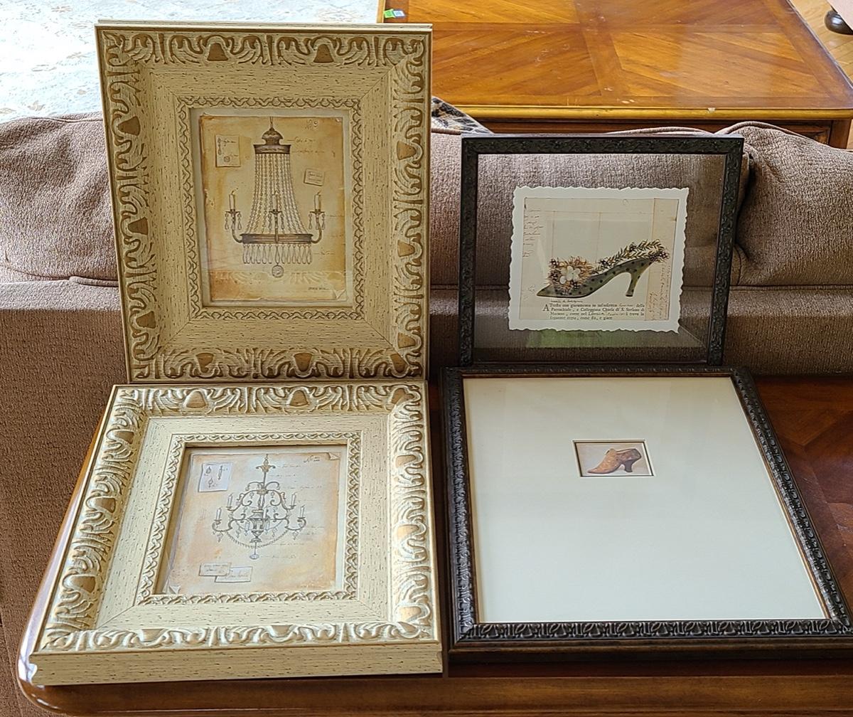 Lot 115: Decorative Wall Prints (Chandeliers & Shoes)
