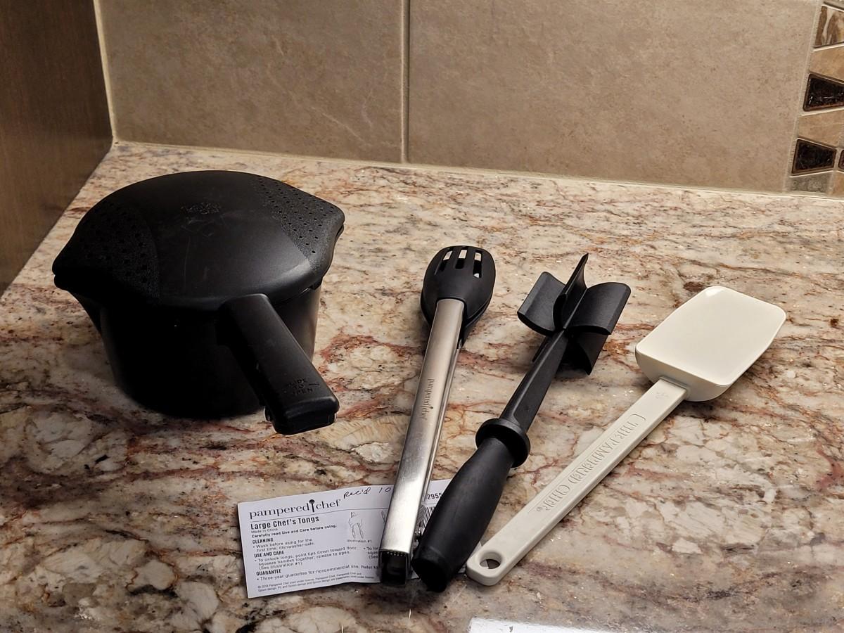 Lot 11: Pampered Chef Microwave Strainer and Utensils