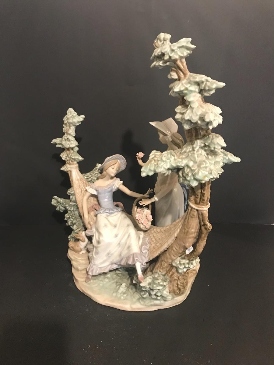 Pleasantries #1440 AS-IS. This large intricate piece has two broken and missing pieces from the trees. Please see all photos. All items have been inspected and any damages or imperfections have been photographed and noted to the best of our knowledge and ability. It is the responsibility of the buyer to inspect all pictures, as they are the best representation of the items. The pictures show condition, measurements if taken, and what is included in the lot. Upon pickup, it is the responsibility of the buyer to inspect their items prior to leaving the premises. Once the items leave the premises, there will be no refunds or returns. Buyers are also responsible for bringing their own boxes and packing materials for their items. Thank you.