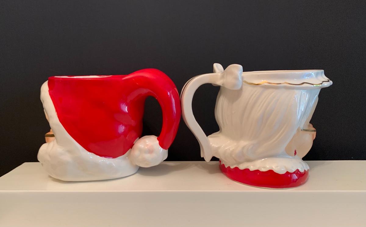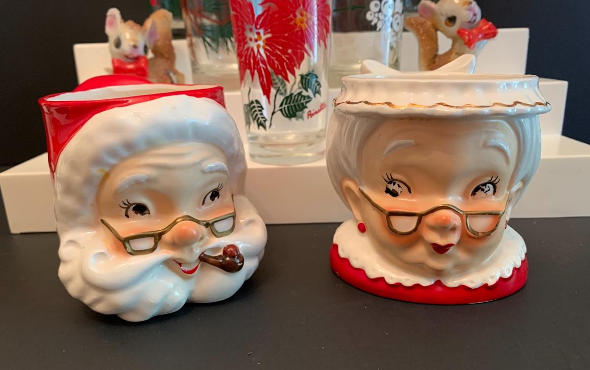 Lot 11: Lefton Santa Mugs, Arnart Squirrel Figurines, Vintage Glassware