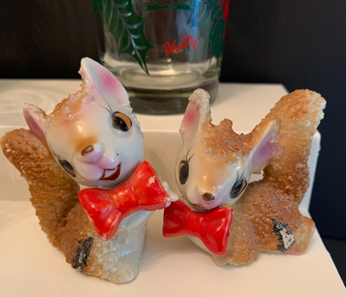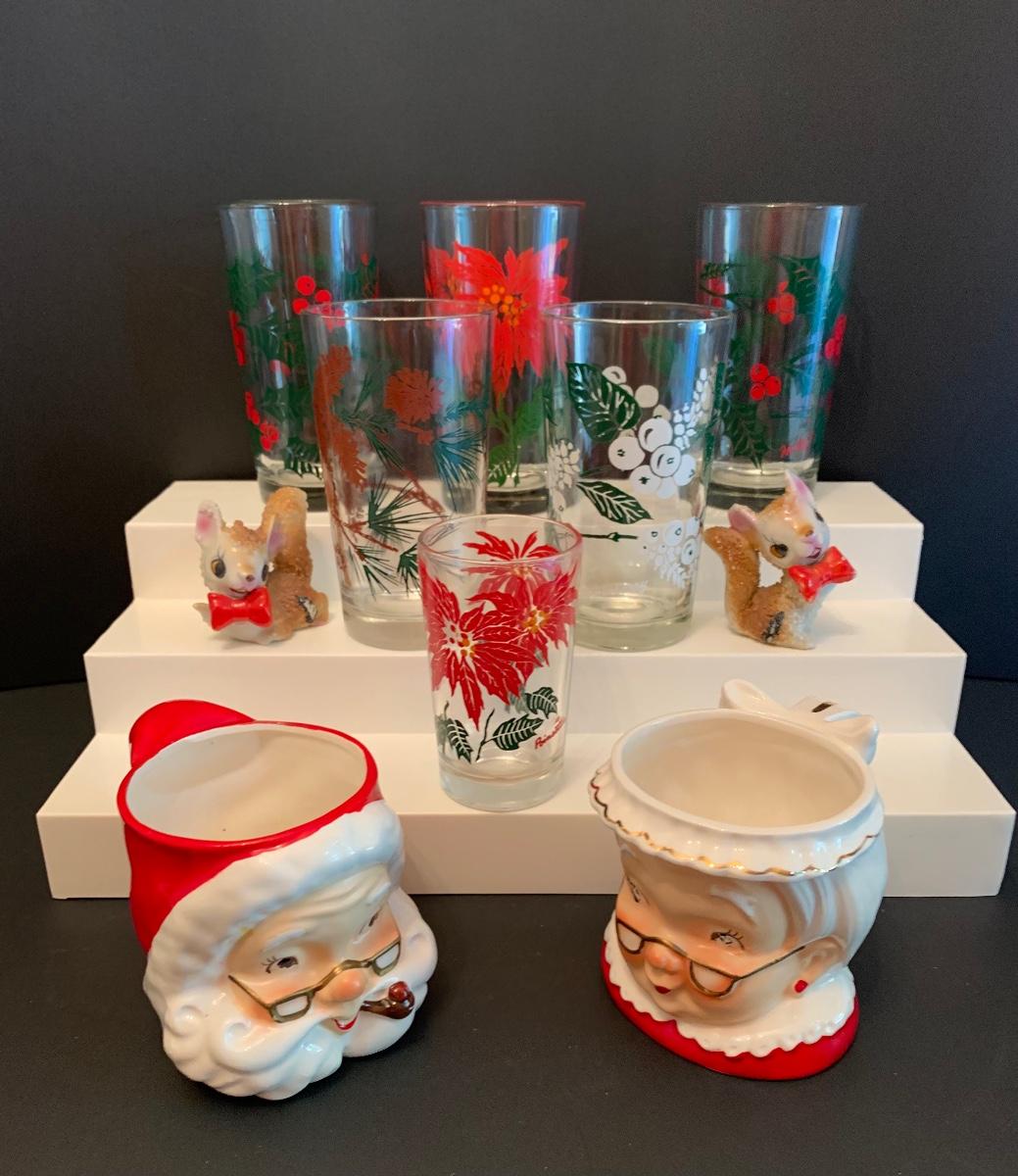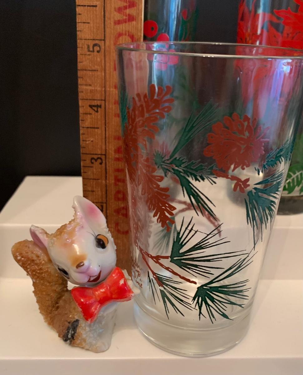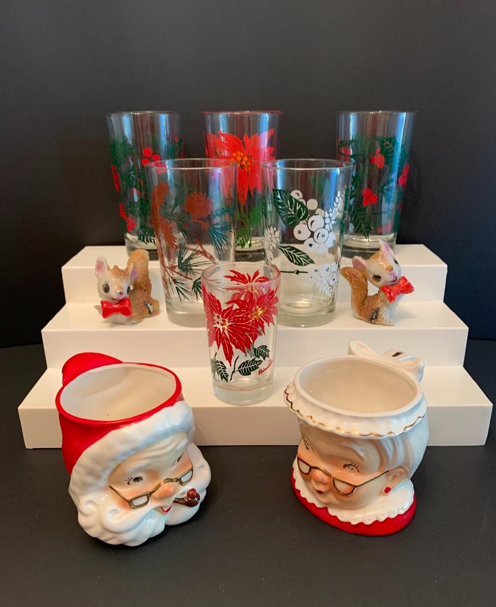 Vintage Christmas collection of vintage Spaghetti Squirrel Figurines, Lefton Mr. & Mrs. Claus mugs. and floral holiday glassware.. Please see all pictures as they are the best representation of the items. The pictures show condition, measurements if taken, and what is included in the lot. Due to the large amount that we photograph and the time frame, we are not always able to take measurements. All items unless noted, are pre-owned and have been used. If you purchased furniture, you must bring help. We do not allow one person to carry large furniture out on their own. Bring help, tools and a truck for the safety of our client’s homes, and your personal safety. Company policy. Thank you.