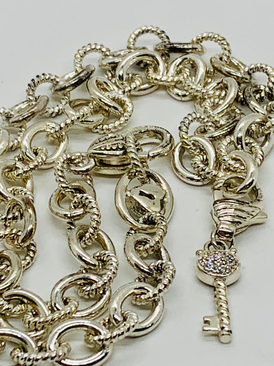 Judith Ripka Sterling necklace has a silver chain with cubic zirconia heart and key, great gift!