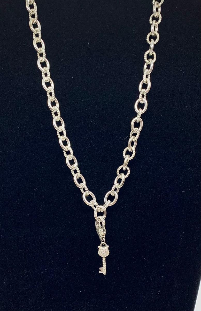 Lot 11: Judith Ripka 925 Diamonique CZ Key Pendant Necklace