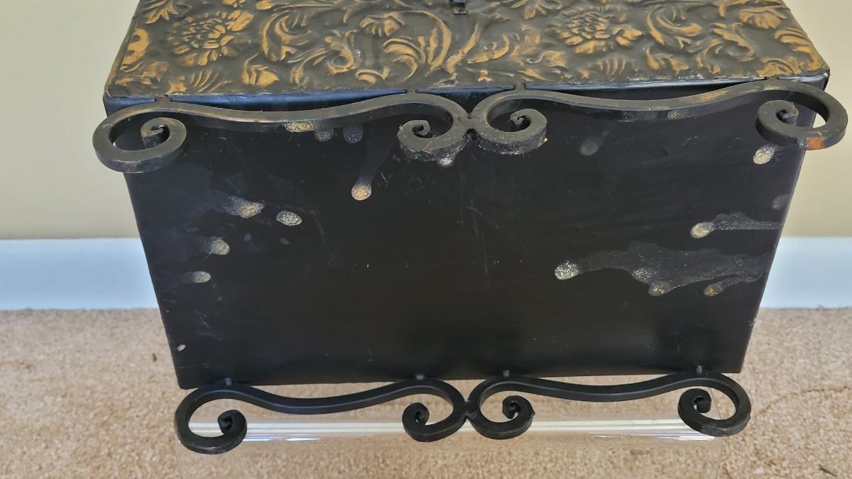 Has something on the top. Not sure if it is something that has been applied or the metal rusting.