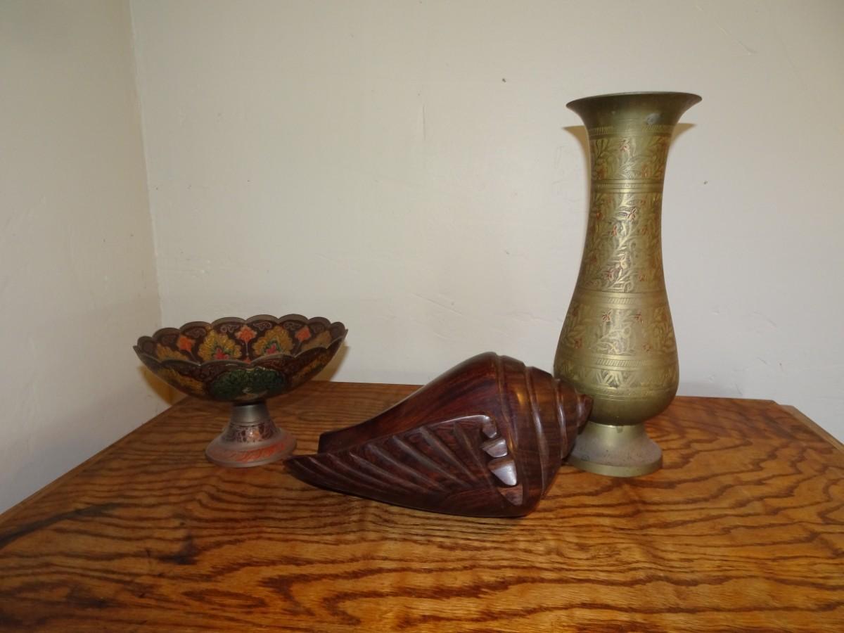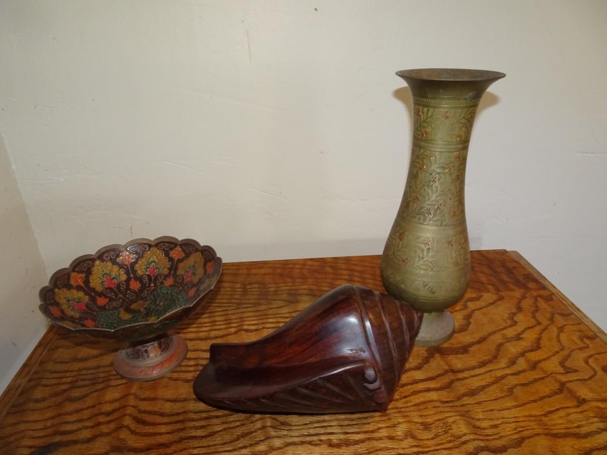 LOT 11. HOME DECOR AND WOOD CARVED SHELL