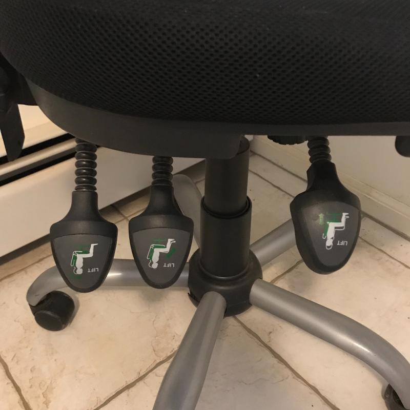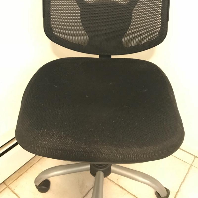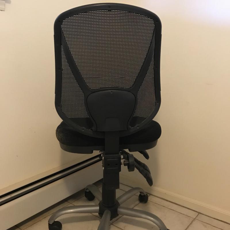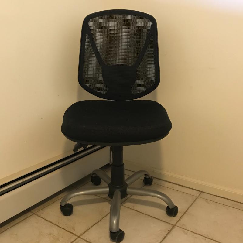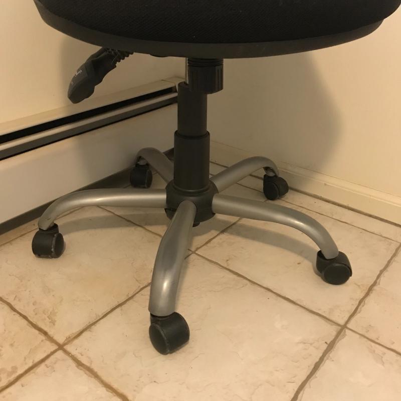 Multi-position black office swivel chair on casters. Wheels stick a little when rolling and could use a cleaning (mainly dust and dog hair) but it’s comfortable and in great shape otherwise. As photographed, measures approx. 20.5” x 22” x 42”. Local pick up only.