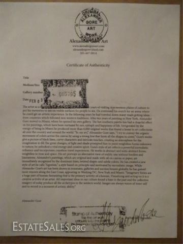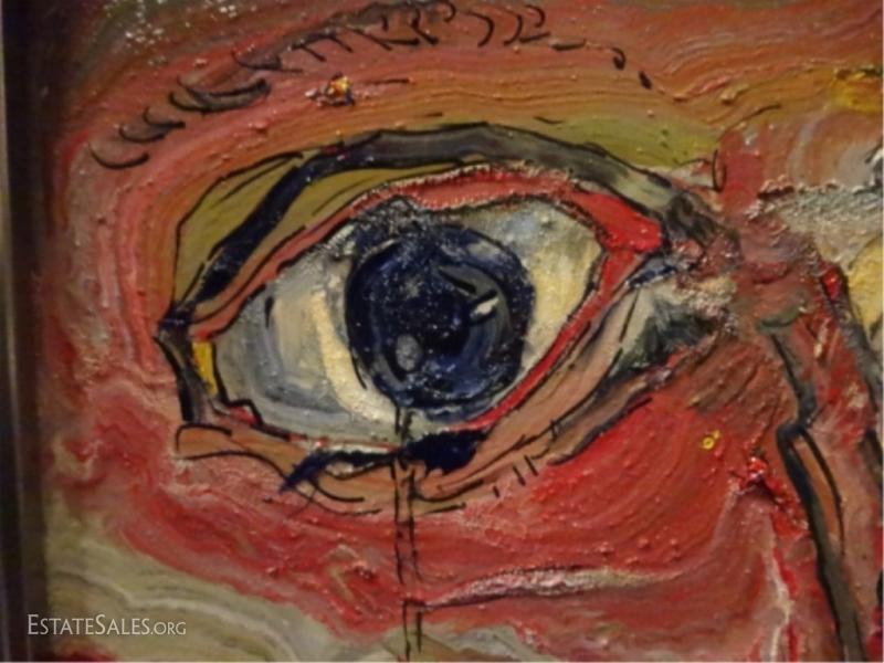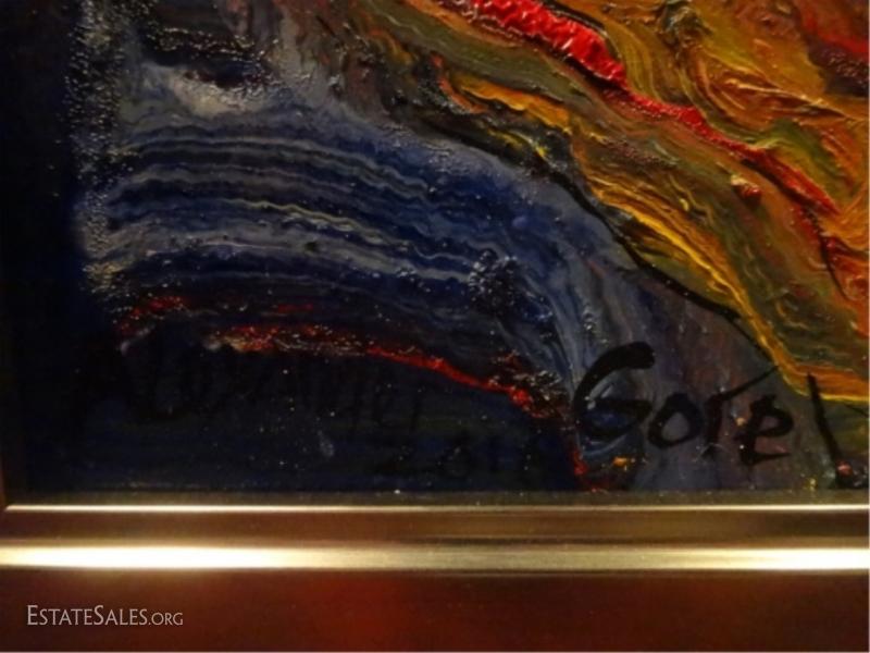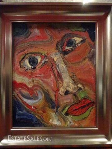 LOT 11: ALEXANDER GORE OIL ON BOARD PAINTING, ABSTRACT FACE, SIGNED LOWER RIGHT, WITH CERTIFICATE OF AUTHENTICITY, FRAMED SIZE 25.5" X 21.25", SKU131.04