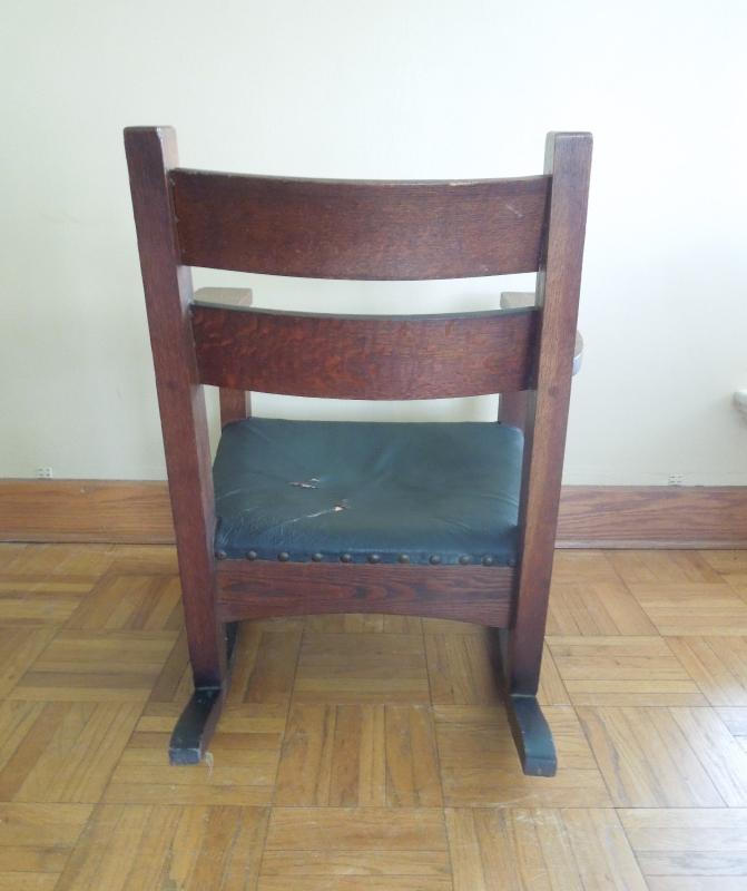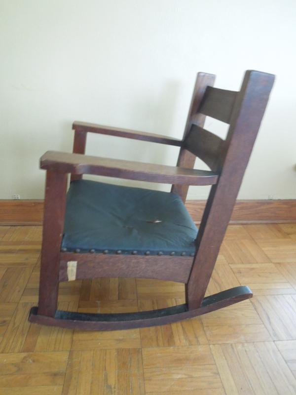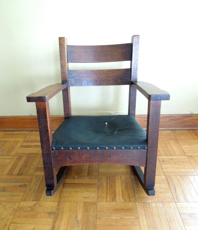 Lot 11 Antique Mission Style Oak Upholstered Rocker