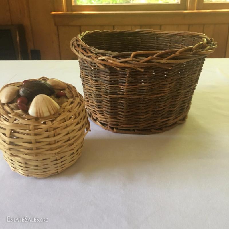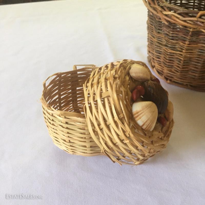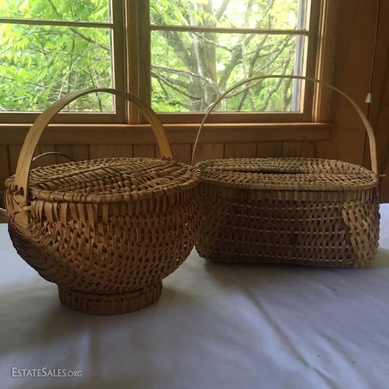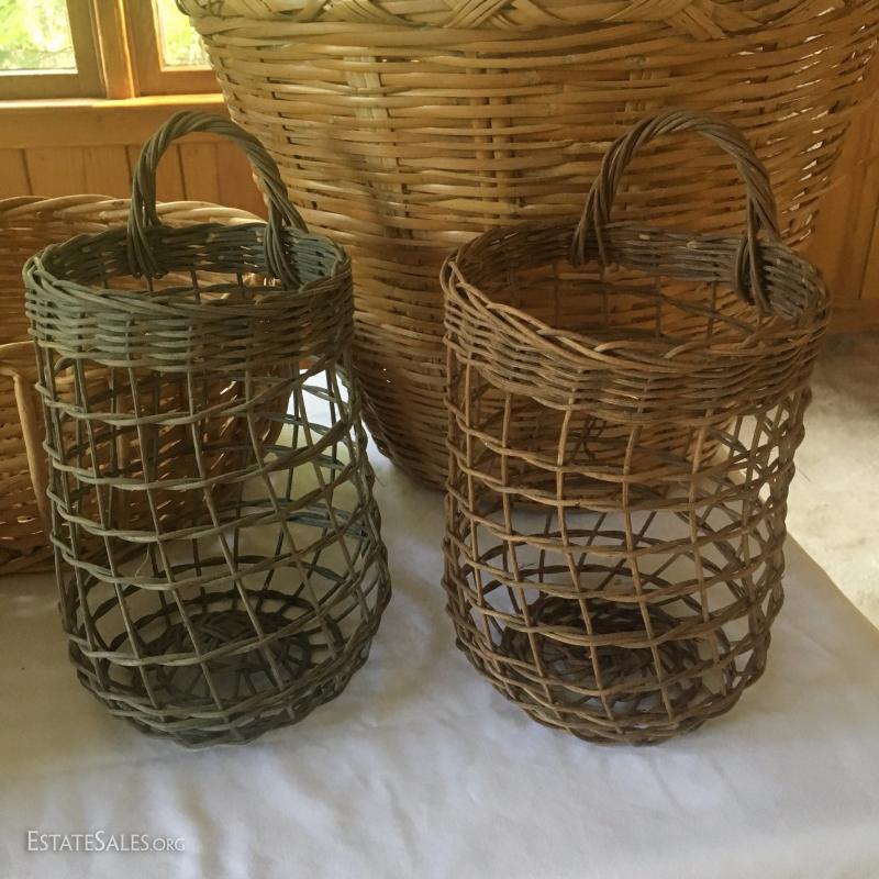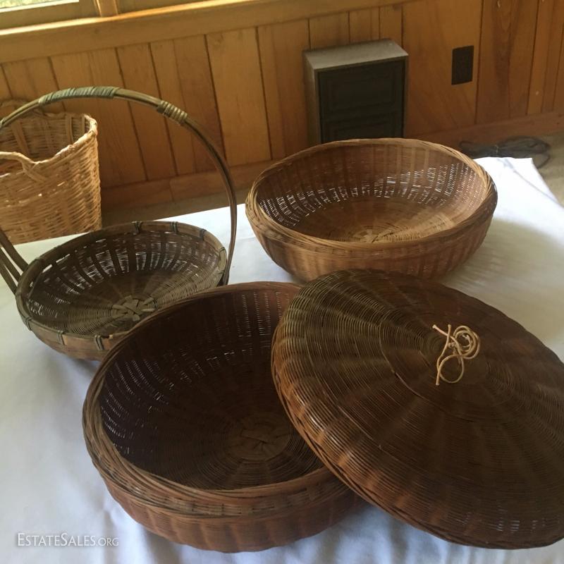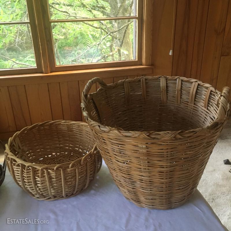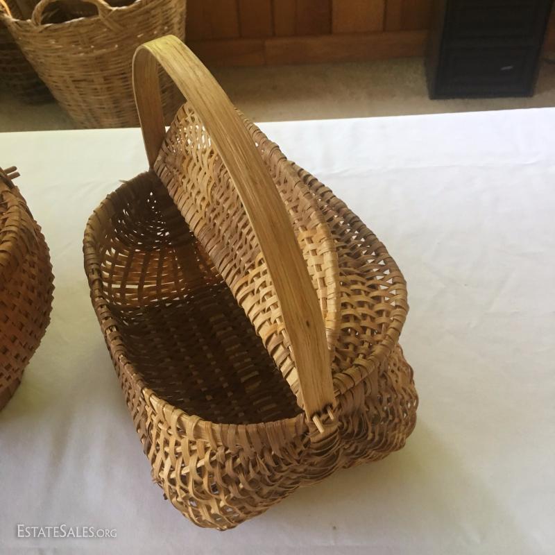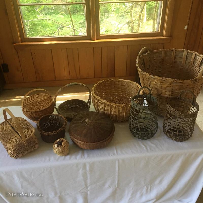 Ten assorted baskets. For size perspective, Largest hamper style basket is 17" tall.