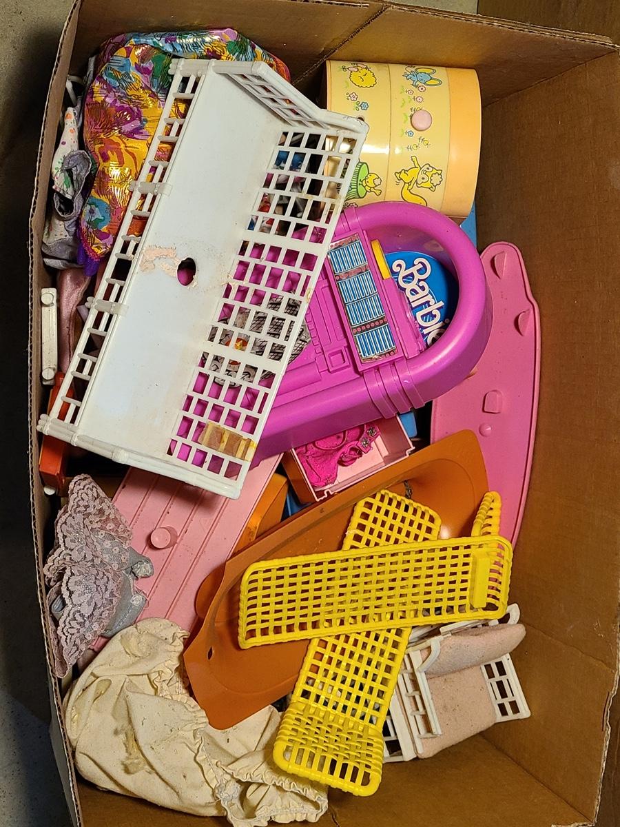 Vintage lot of toys and barbies. These are as-is found in basement. Please see all pictures as they are the best representation of the items in the lot, the condition of the lot, and will show measurements if taken. If purchasing furniture you must be able to move yourself with your own help, and truck. .