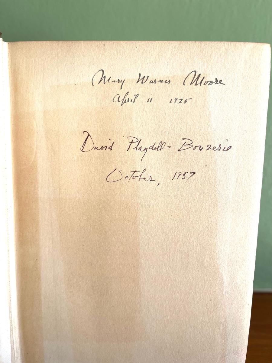 LOT 11 - Book of Ranks and Dignities of British Society attributed to Charles Lamb. This book is SIGNED by Marianne Moore in 1925 and may have been her personal book. Below is David's name with the date 1957. This includes an original letter from Marianne Moore giving the book to David. This book includes original dust jacket. Inner pages have some light discolored marks from age. The back inner page has some notes in pencil. Otherwise a very clean and neat edition.