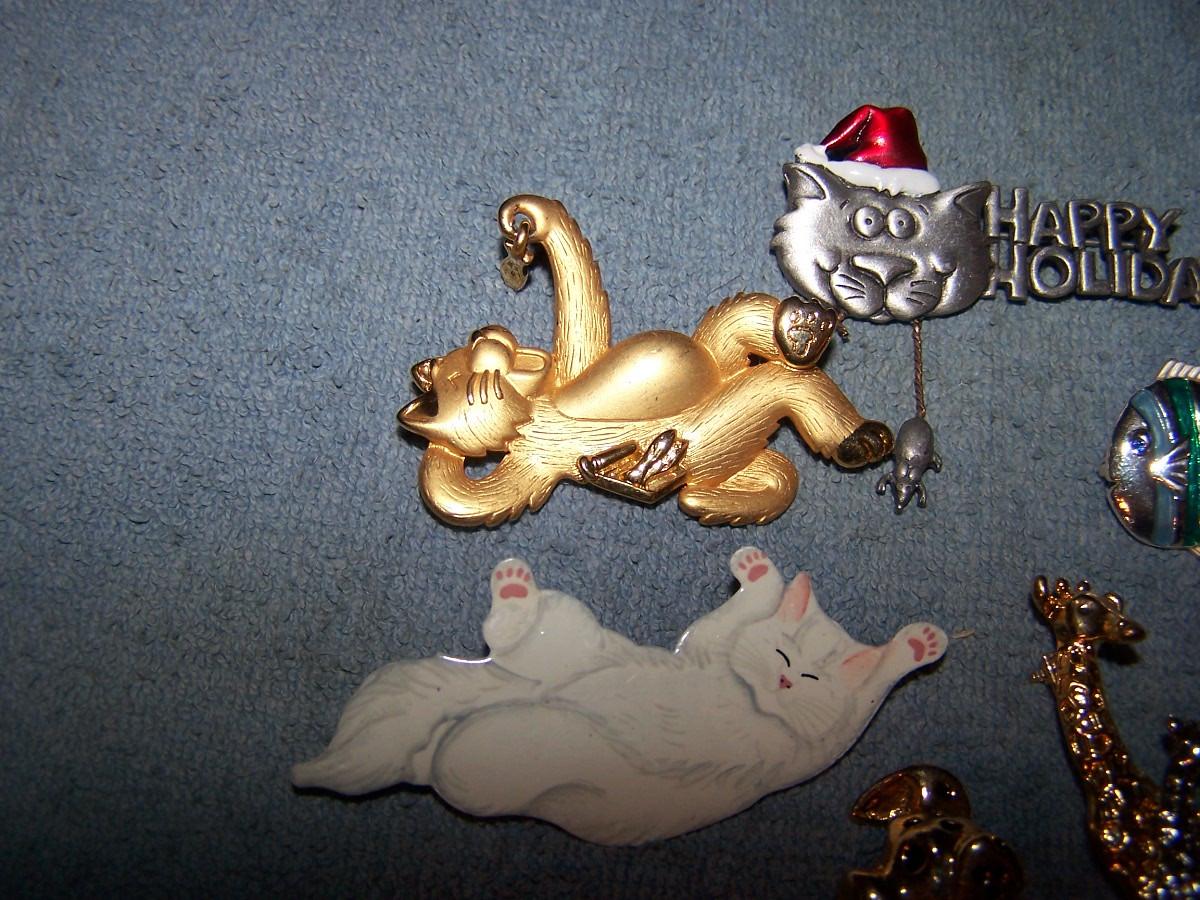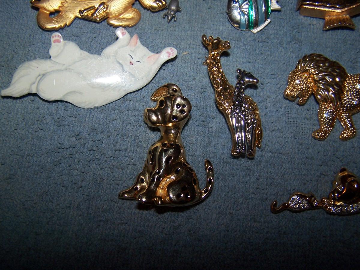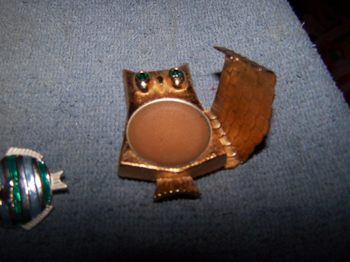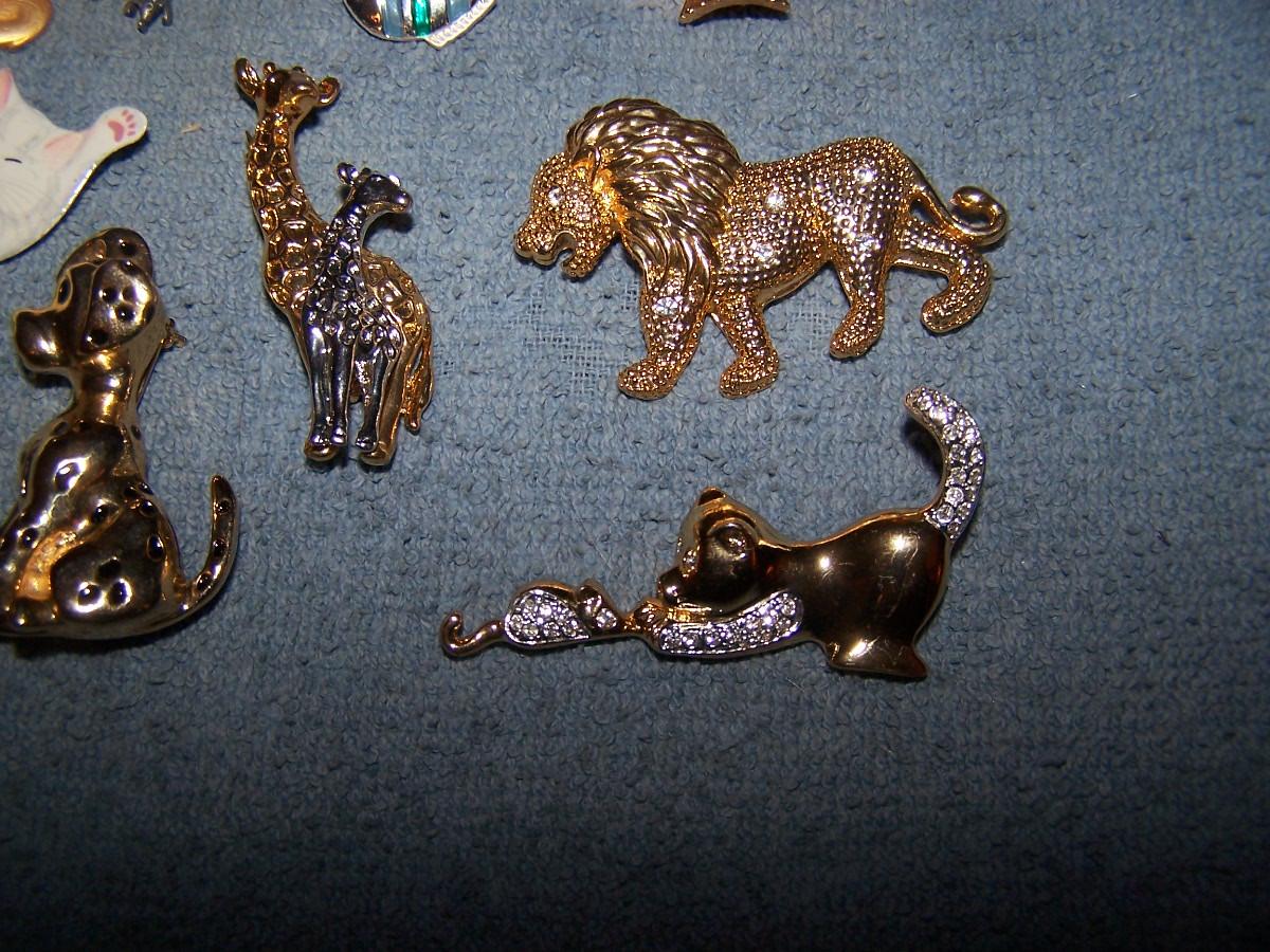9 METAL COLLECTIBLE FASHION PINS... THE OWL IS AVON, AND STILL HAS PERFUME IN IT....