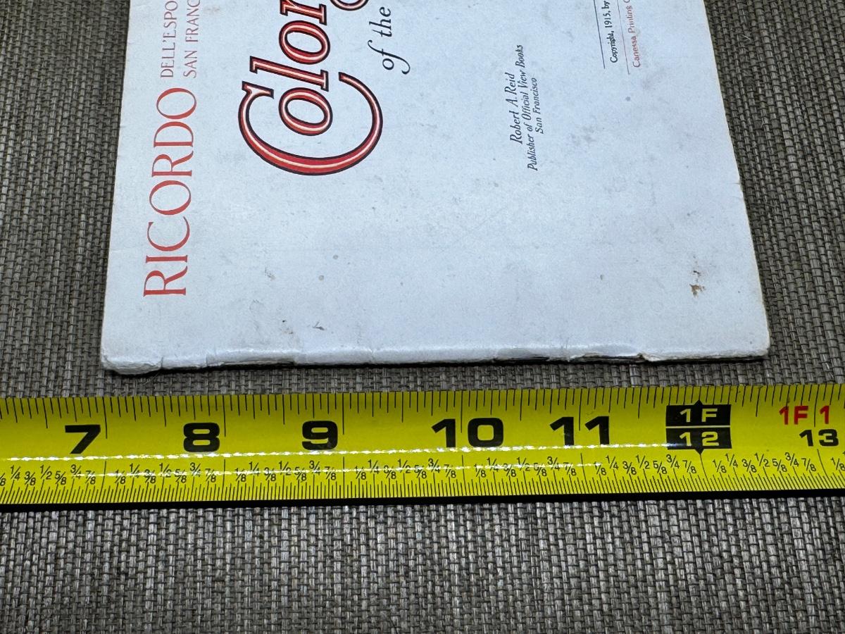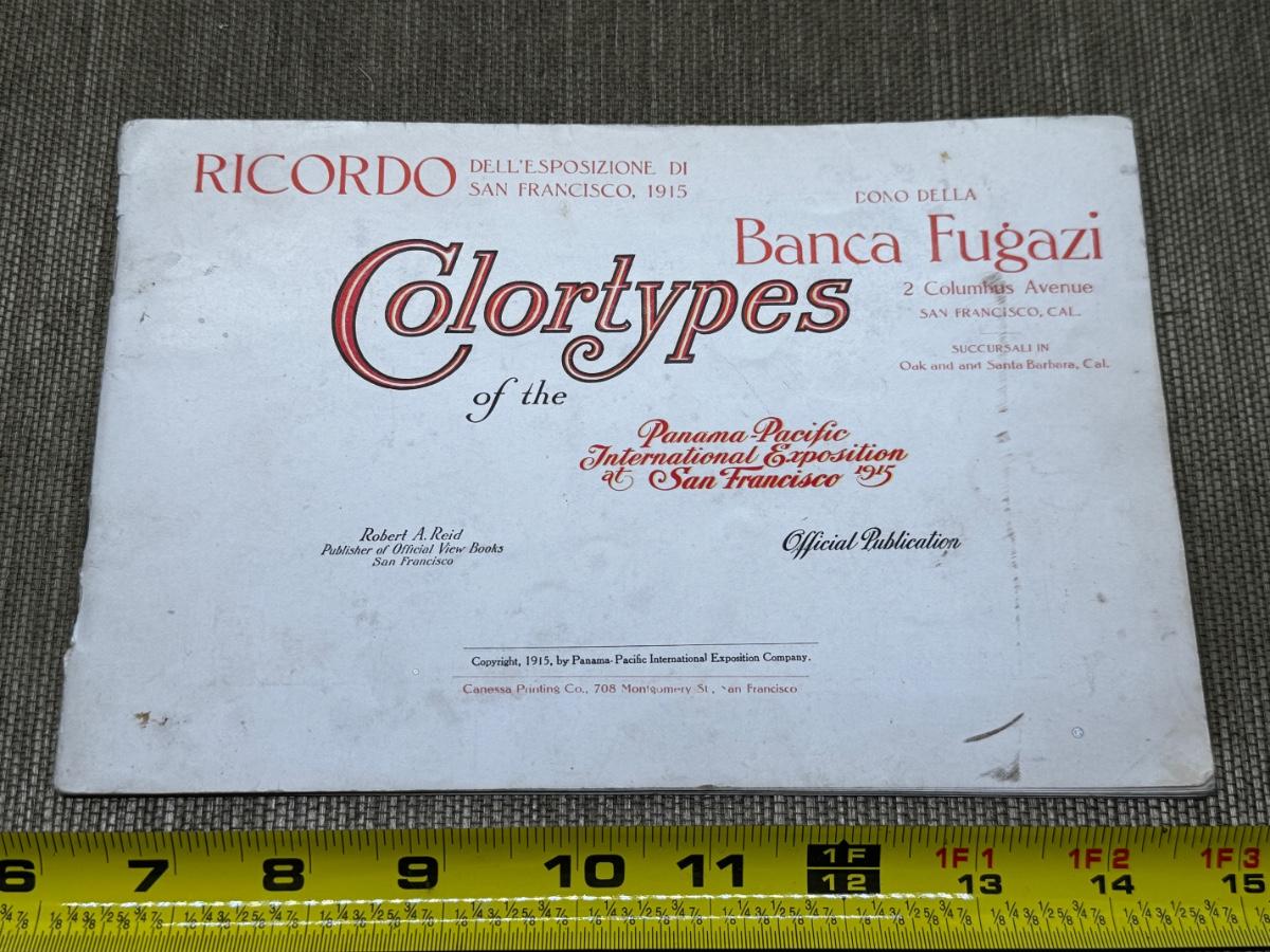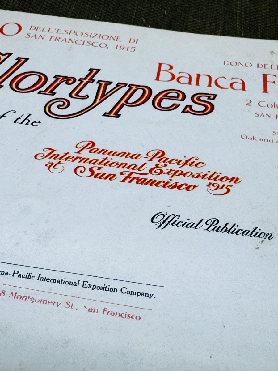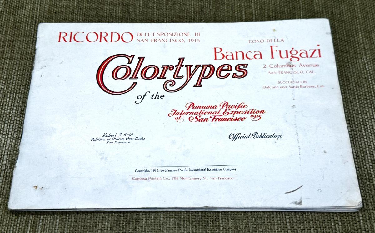 Colortypes of the Panama Pacific International Exposition of San Francisco 1915. 31 Vivid picture. Official Publication Robert A. Reid. Light wear on inside Some cover creases, wear and discoloration Photos include: The Tower of Jewels, Calder's Fountain of Energy, The Palace of Fine Arts and many more.