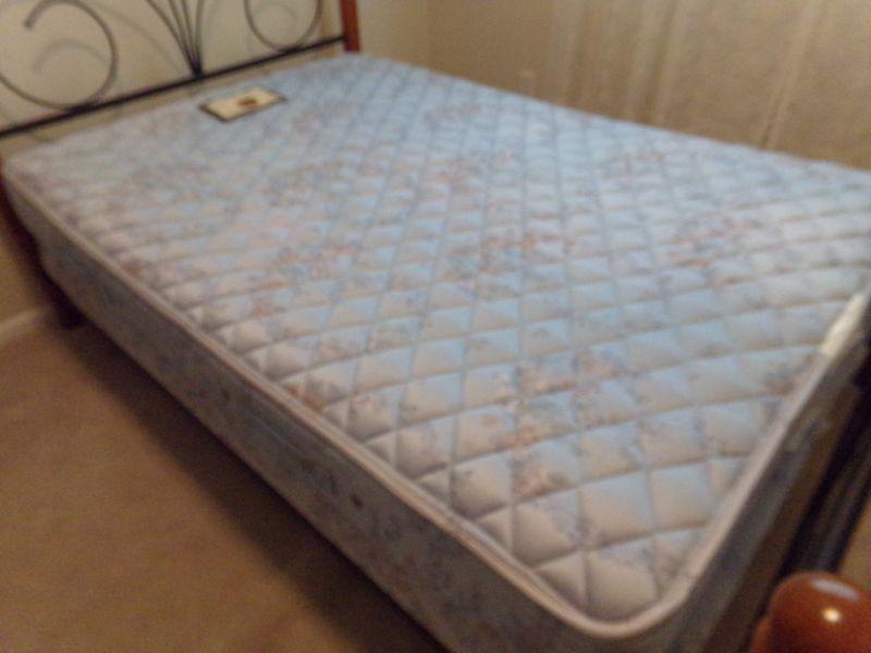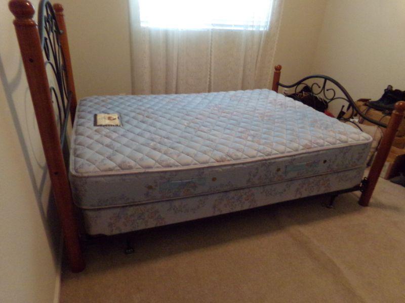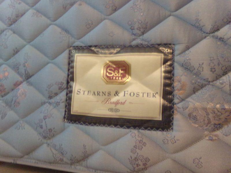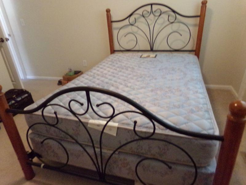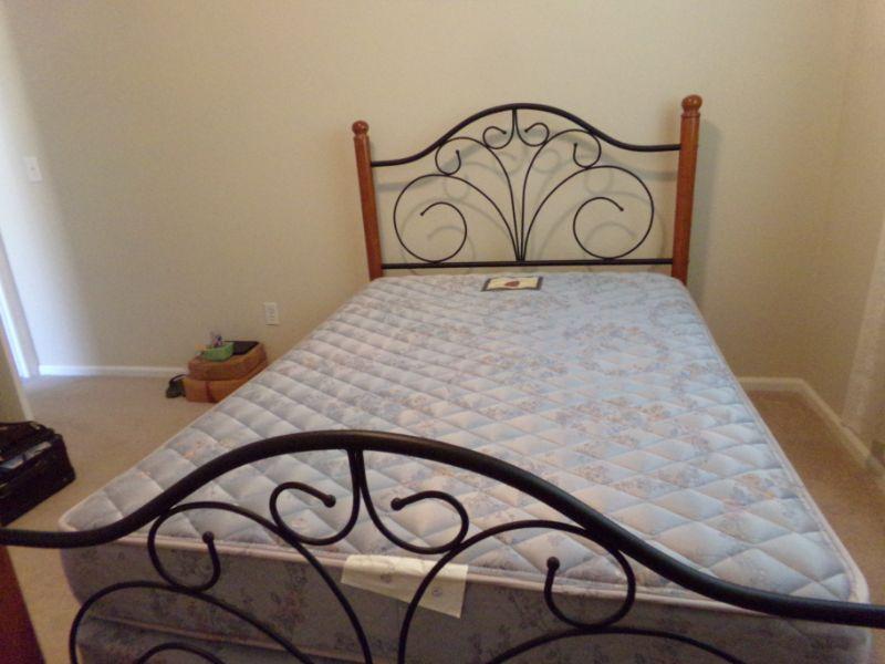 IRON HEAD AND FOOTBOARD WITH WOOD POSTS, STEARNS AND FOSTER MATTRESS IS VERY CLEAN AND LIGHTLY USED