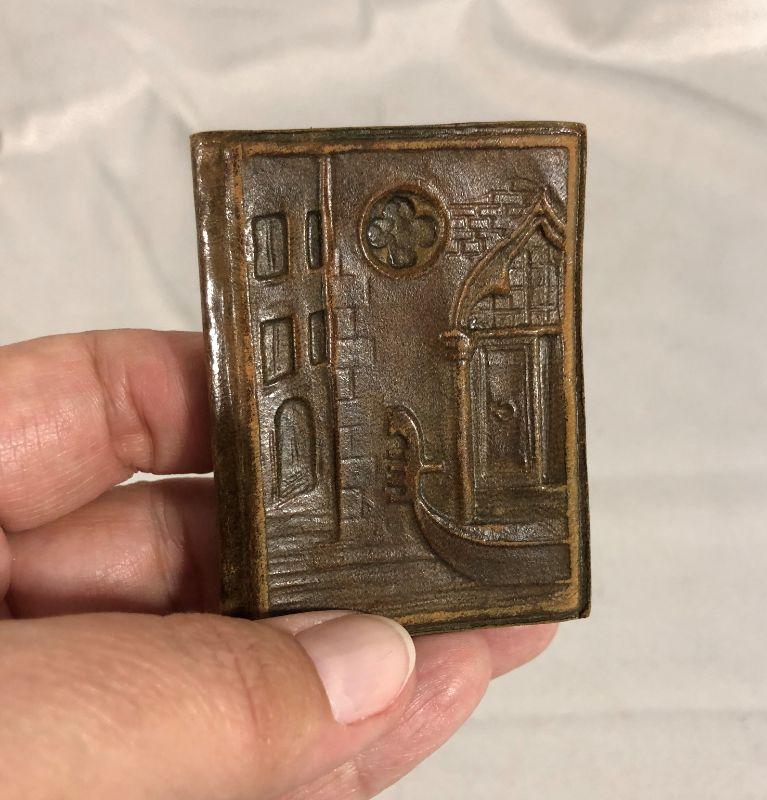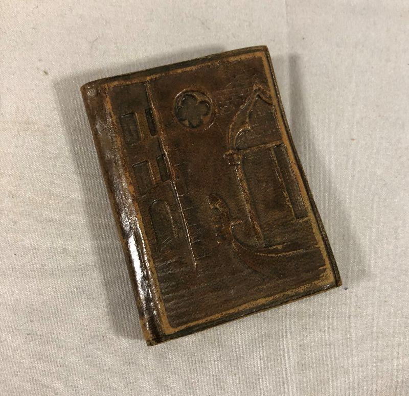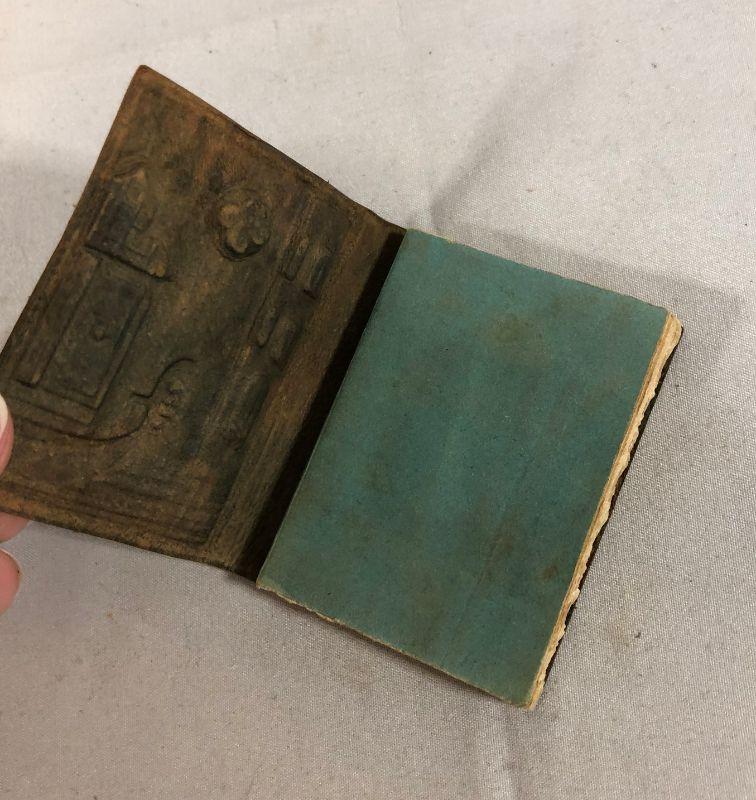 Lovely embossed leather cover from the 1930s. The pages are all blank and the binding is in very good condition. Measures about 2" x 2.5".