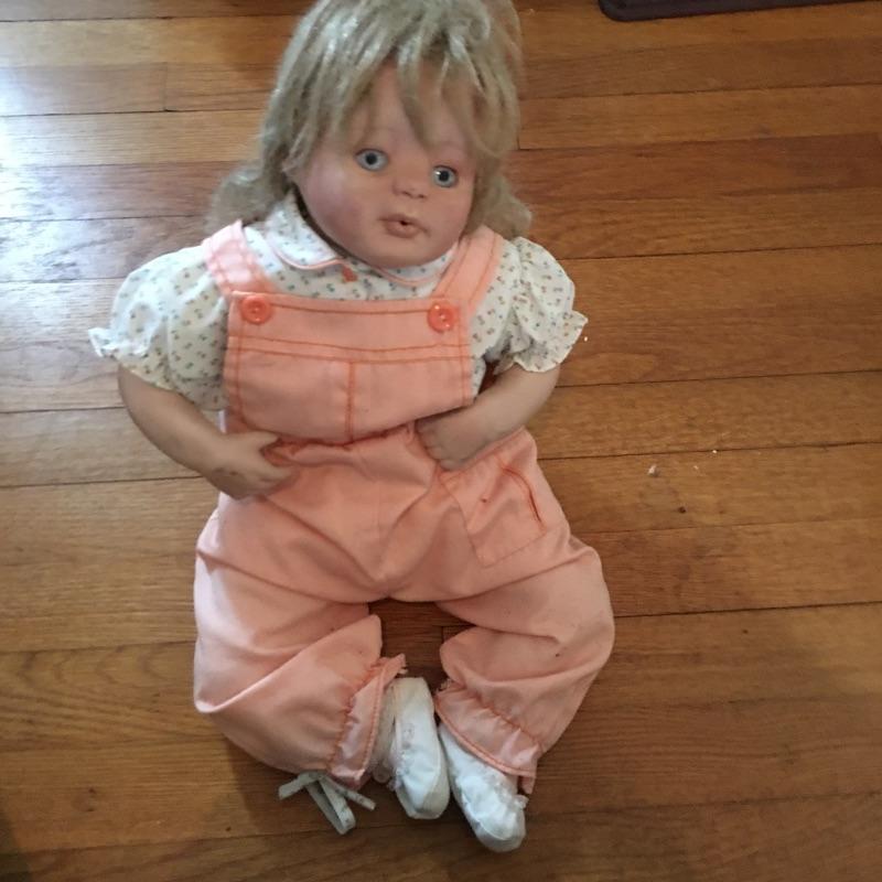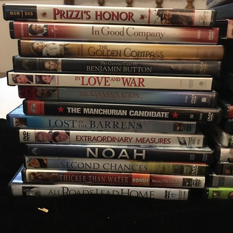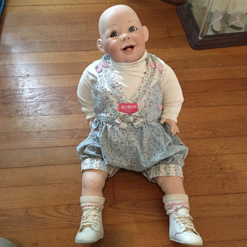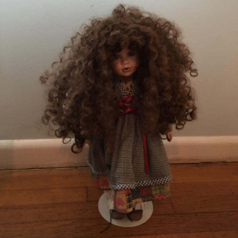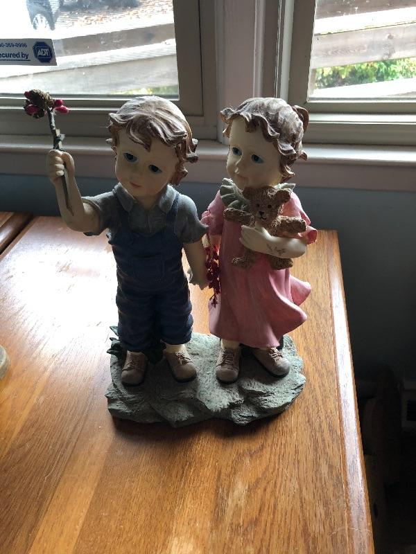 Keep yourself entertained for months to come with this assortment of DVDs, games, dolls and more. Lot includes DVDs, 3 life size dolls and a doll in a display case and two ceramic figurines. Games include Scrabble Up, Chinese Checkers, dominos, and puzzles. Also included is a stuffed animal rabbit, doll display table and shelf, wooden chair, red desk, headboard, Radio Flyer Tricycle, Princess Bicycle and more. Red desk measures 17.5” x 39.5” x 29”.