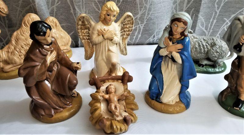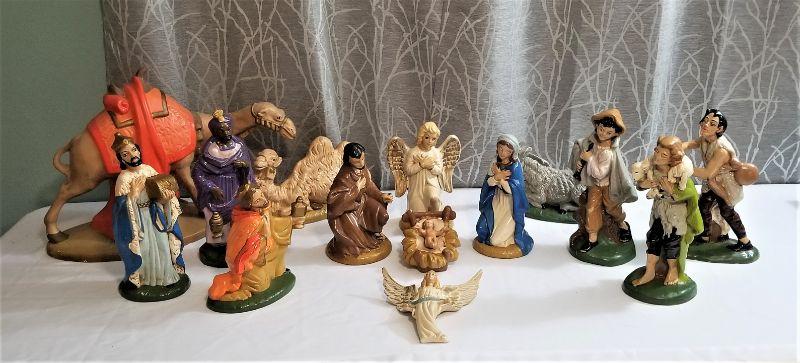 Lot #11  Kitchsy Vintage Ceramic Manger Set - 15 Pieces