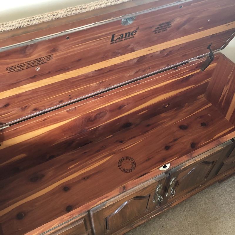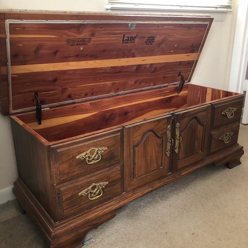 Store your linens and blankets in this Lane cedar chest. It measures 49” x 17.5” x 19.5”. Note that there is a recall on the lock system. Local pick up only.