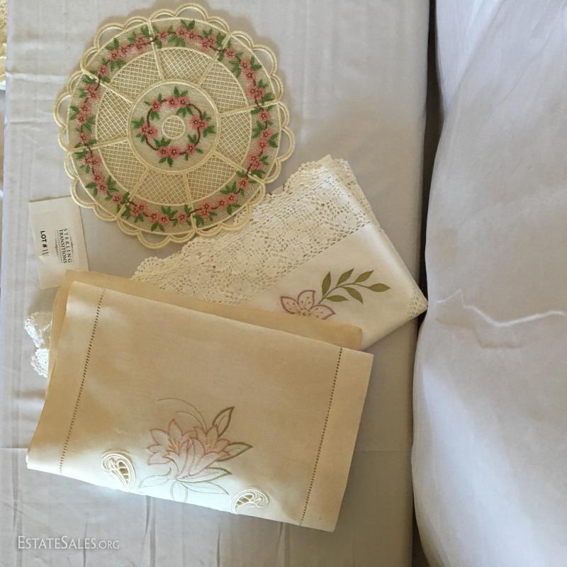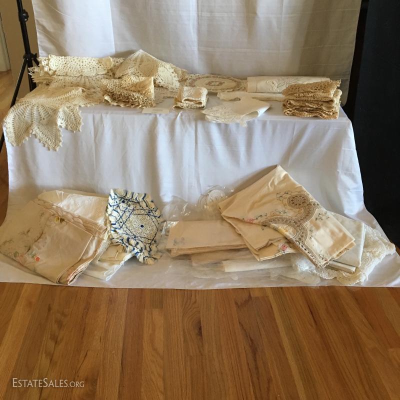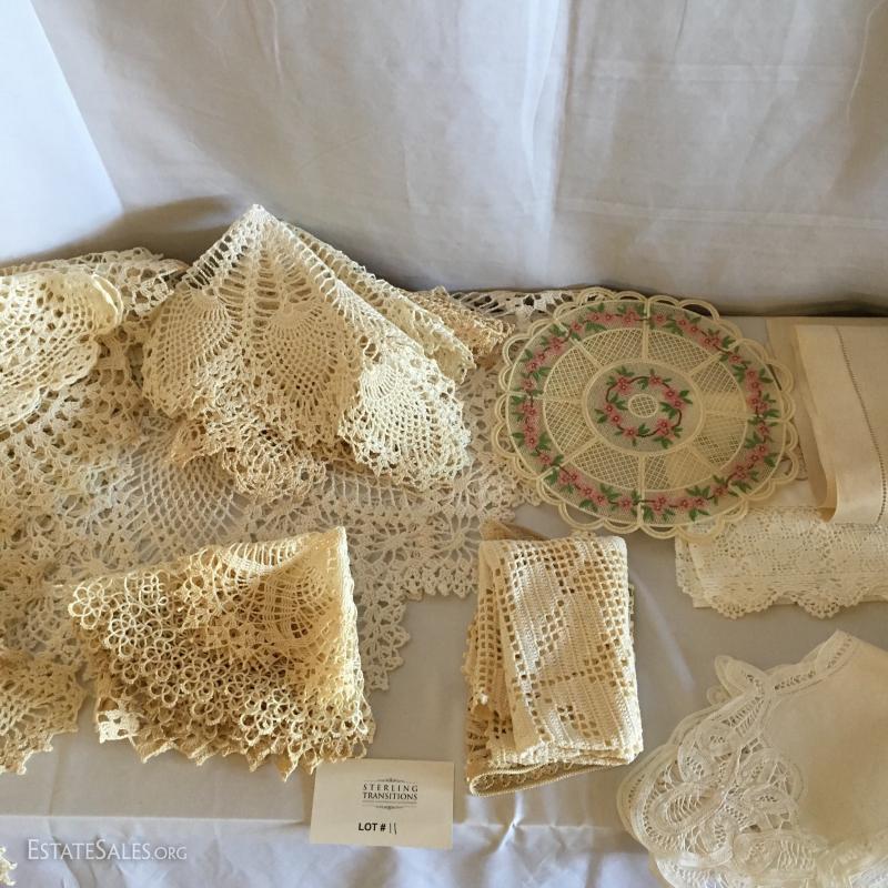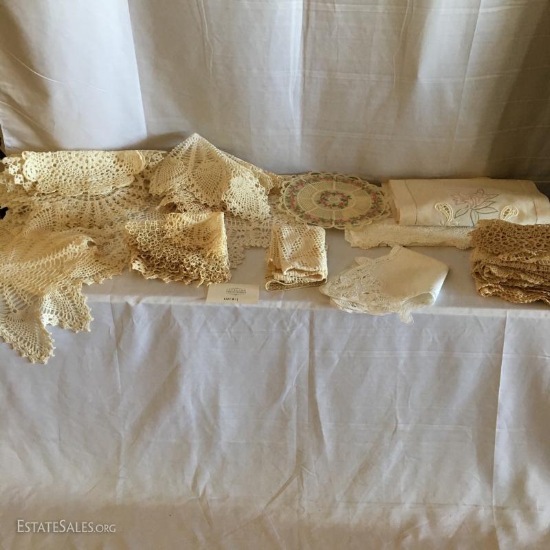 Miscellaneous Linen Lot. Some Embroidered. Some Crochet. Mostly Doilies. Some hand towels.