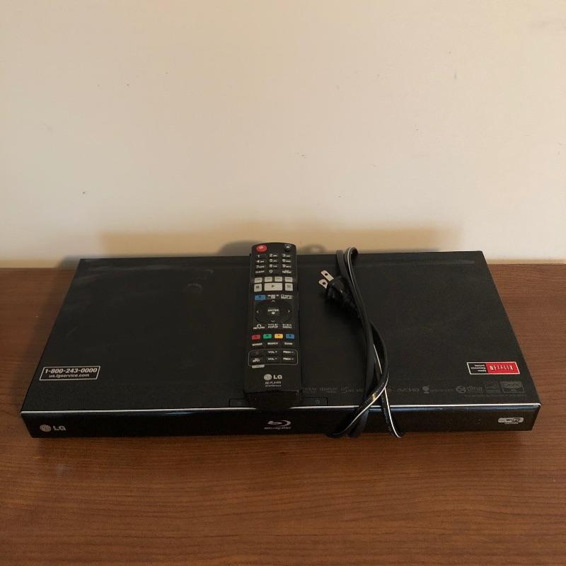 This LG Blu-ray player comes with its remote. It is compatible with Netflix and has Blu-ray features as well. If you are looking to upgrade your TV system, then look no further. See images for more information on make and model. The Blu-ray powered up when plugged in.