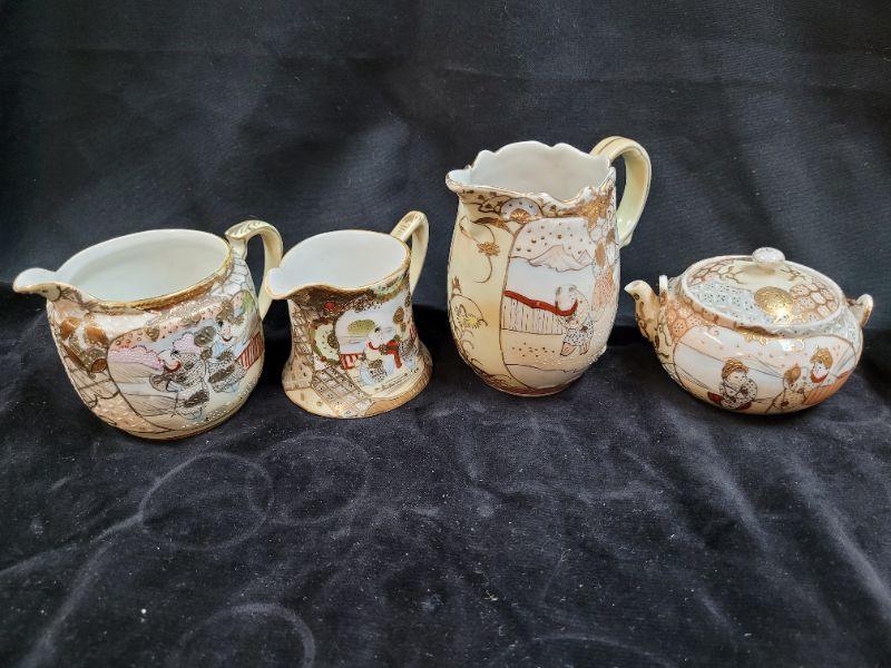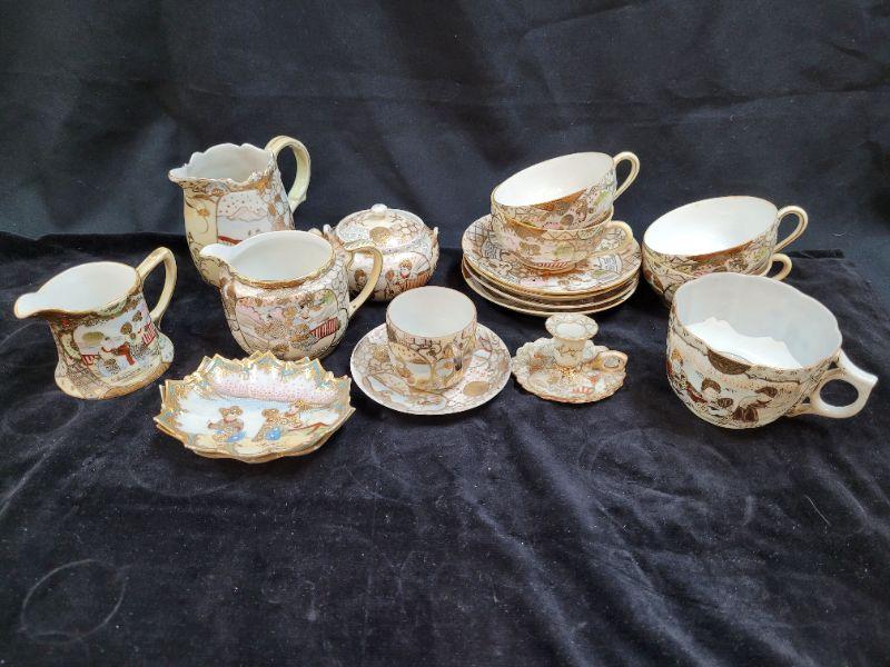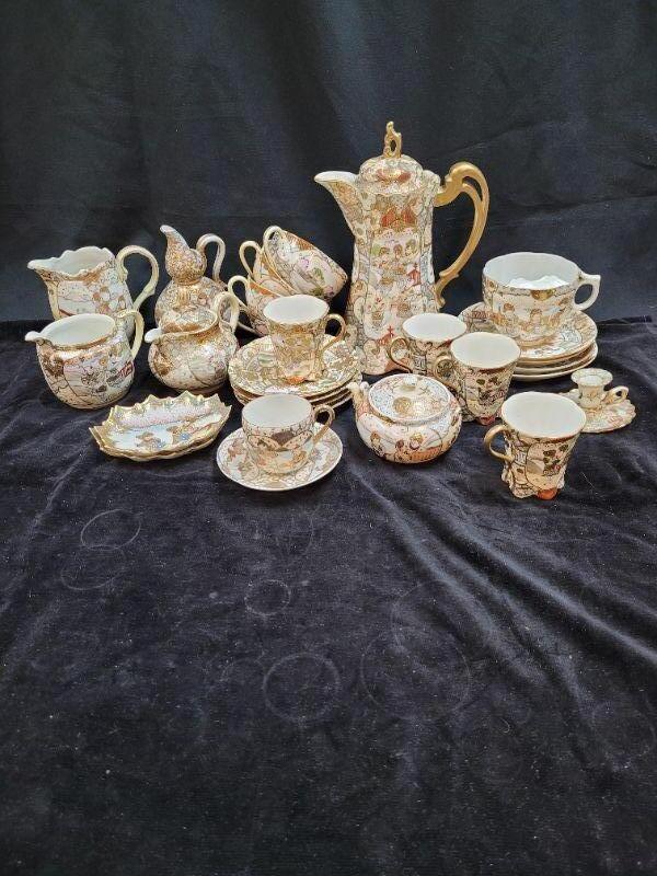 Lot 11: Lot of Japanese Jeweled Hand Painted Nippon Tea Service Set