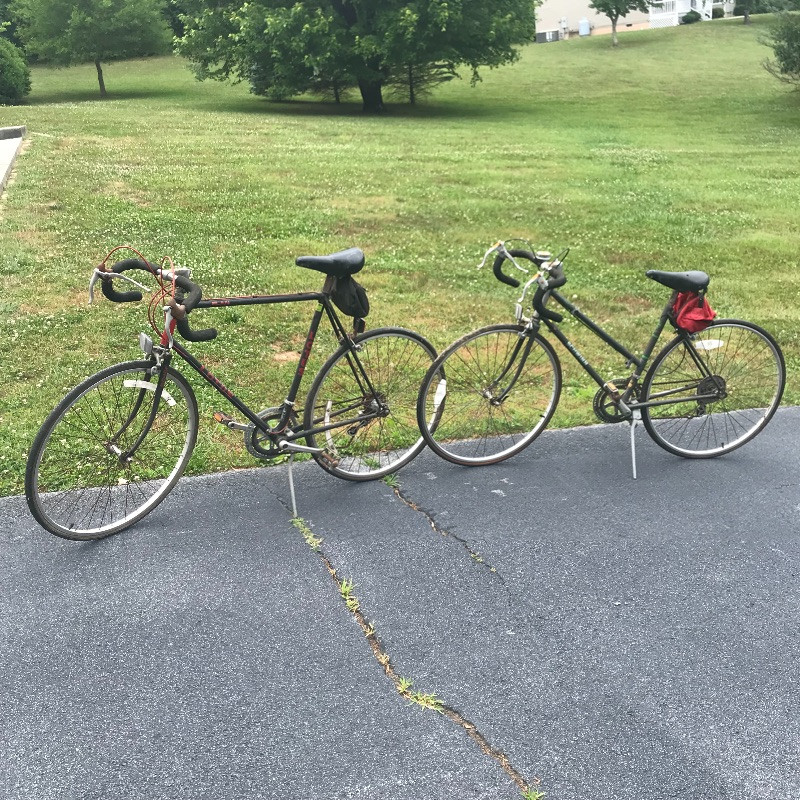 His and Her's bikes so that you can both get out and hit the roads together with these Lotus Elan and Schwinn Traveler bicycles Both are 12 speed Chromemoly road bikes. The Lotus Elan appears to be 63.5cm(25”) with Suntour Cyclone m-II and the Schwinn appears to be 50cm(20”), Suntour AR. Both have rust throughout and are in need of tune-ups and possibly other restoration like new brakes or tires but both bikes appear to be in working order and with a little love can be returned back to full potential. See images.
