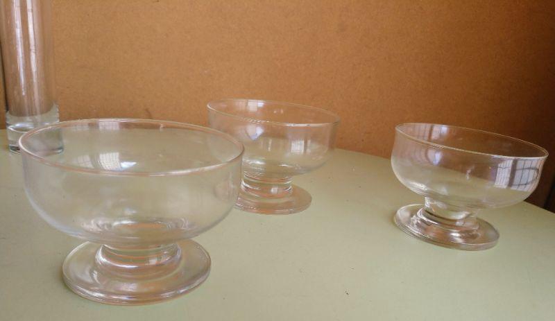Dessert cups, Finnish glass, Mikasa candle holders, and lovely (possibly Mikasa vase)