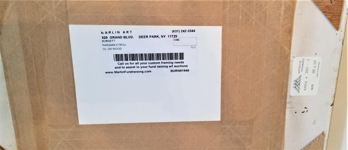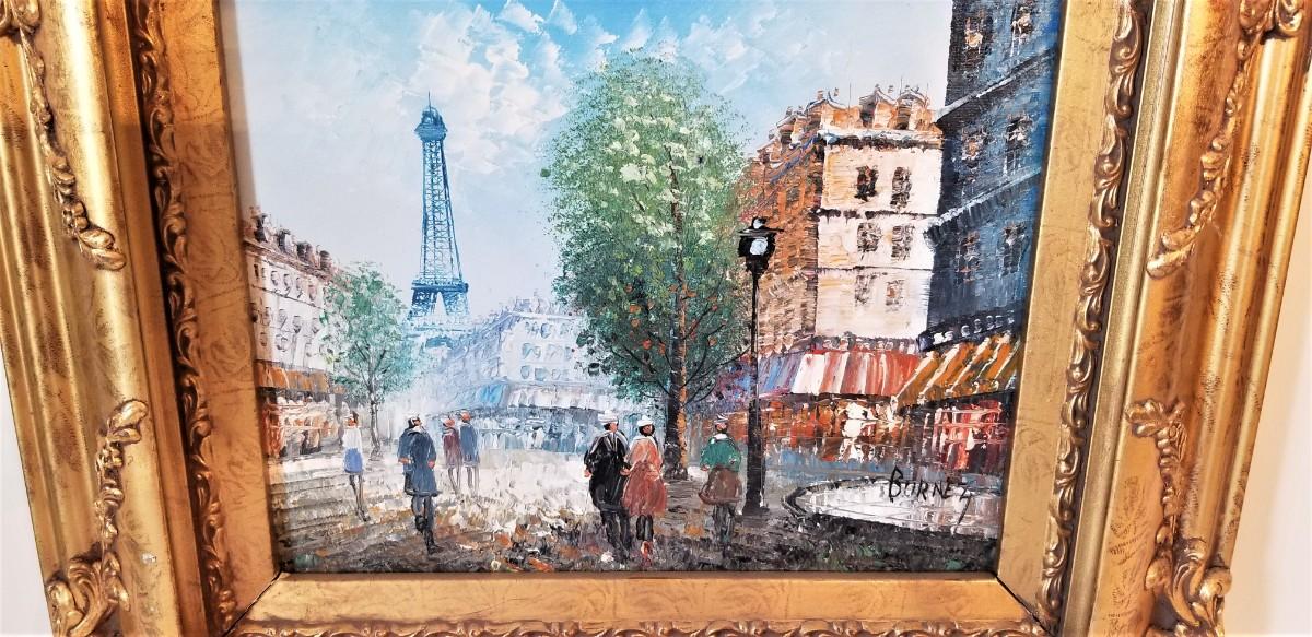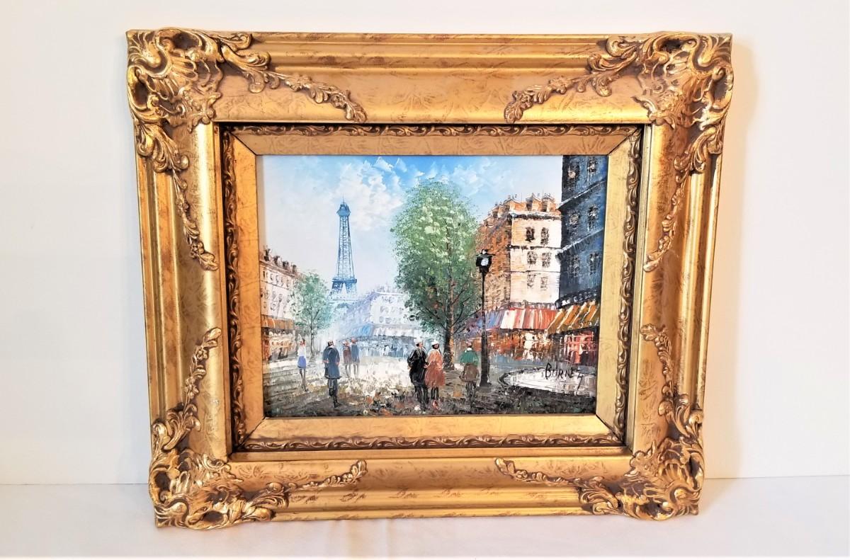 Nice smaller painting - oil on board "Parisian Stroll" Gilded Frame. Measures 15.5" x 13.75". Great condition.