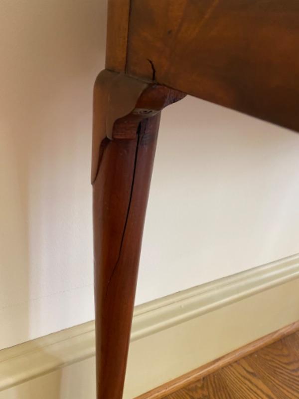 Measures 33” x 15” x 28.25” natural crack on back leg
