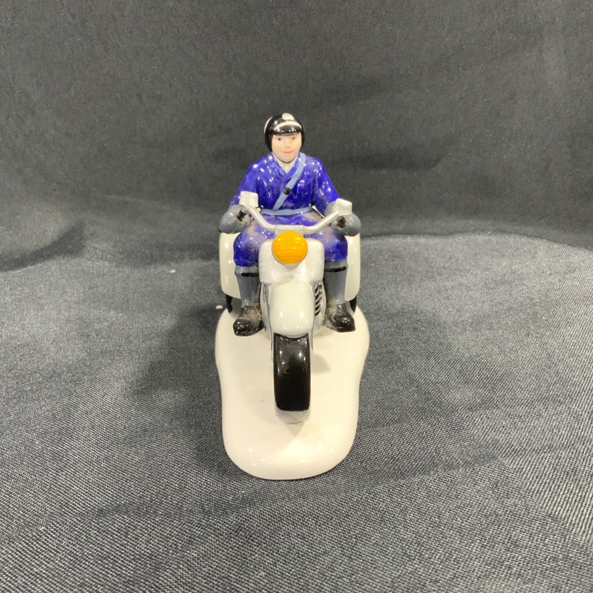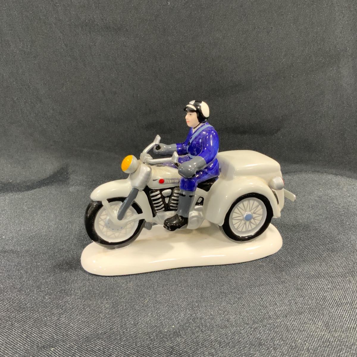 Patrolling the Road, Police Officer on service bike. Please see photos for details and condition. ::: Shipping is available on this lot. If you require shipping you must let us know at the close of the auction. We will coordinate with you after the item has been won. Shipping fees will include insurance up to or exceeding the value of all items being mailed. If you have any questions regarding this lot please contact the auctioneer either via this website, by direct email or by phone. PICK UP TIMES and other important information can be found in the TERMS and DESCRIPTION of the auction. Please take a look for pertinent information. Thanks! Any condition statement is given as a courtesy to a client, is an opinion, and should not be treated as a statement of fact. Reference to condition written, oral or within a condition report shall not be regarded as a full account of condition and may not include all defects, alterations, or restorations. Absence of a condition report does not imply a lot is flawless or lacking imperfections or damage. Katherine’s Auction & Appraisal Service shall have no responsibility for any error or omission. Returns shall not be accepted on the basis of condition.