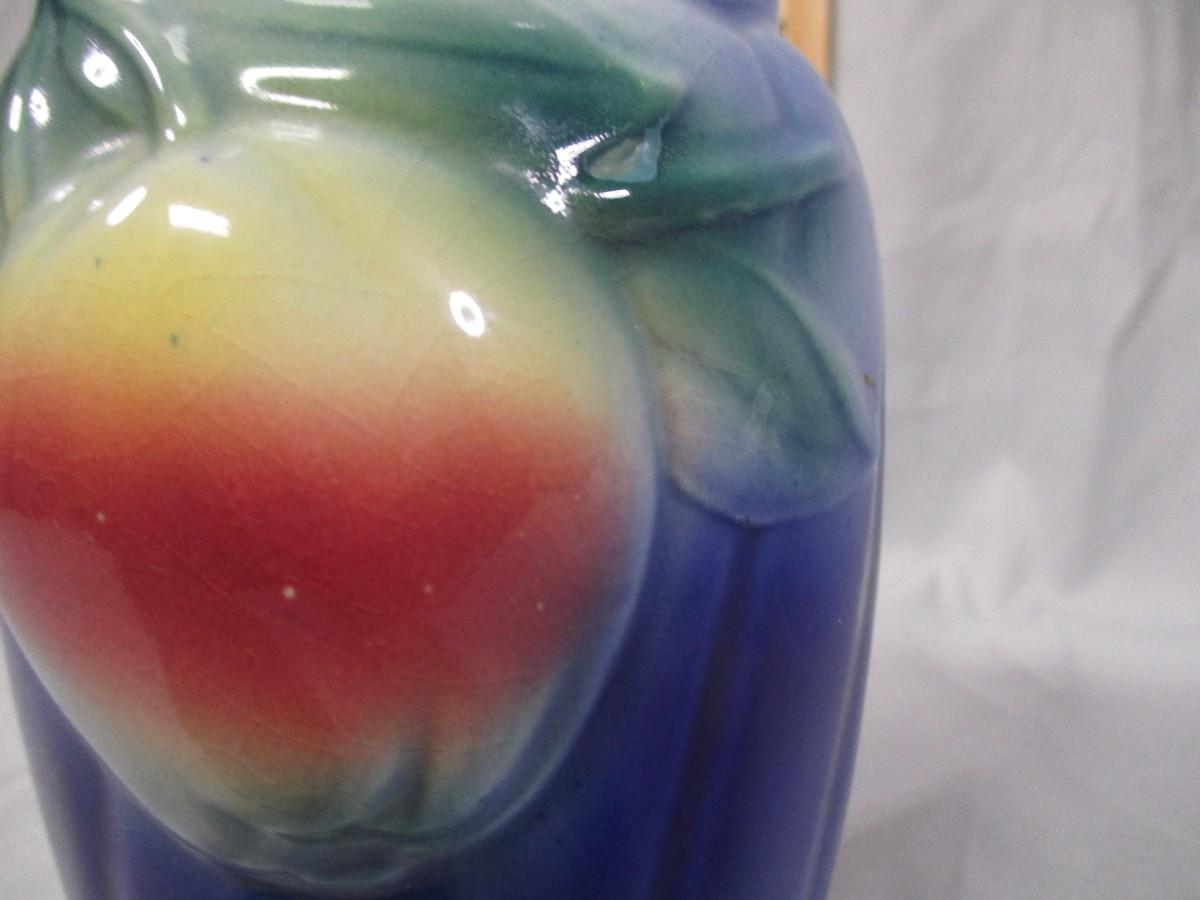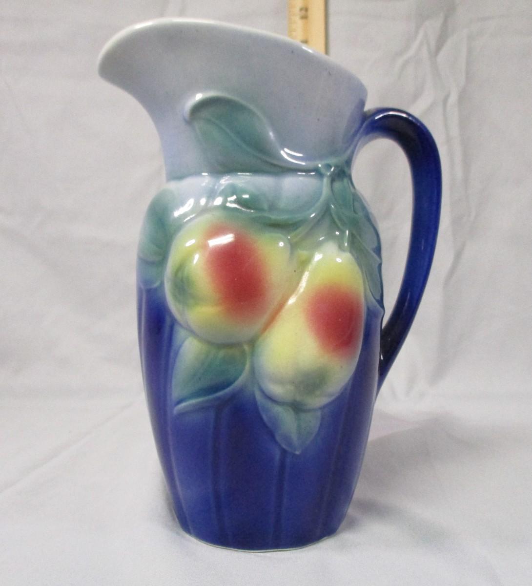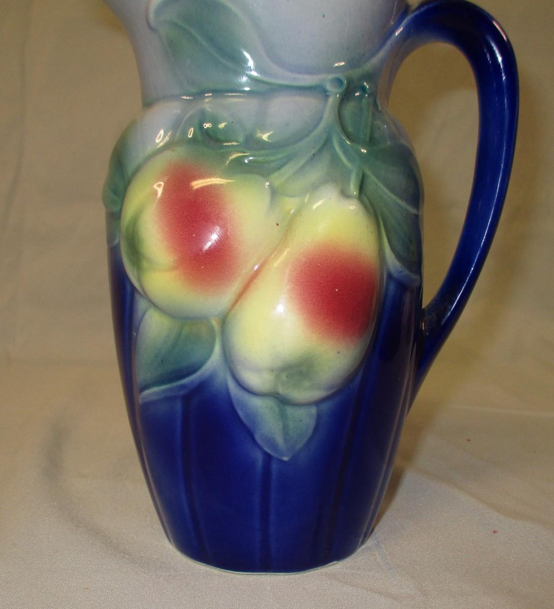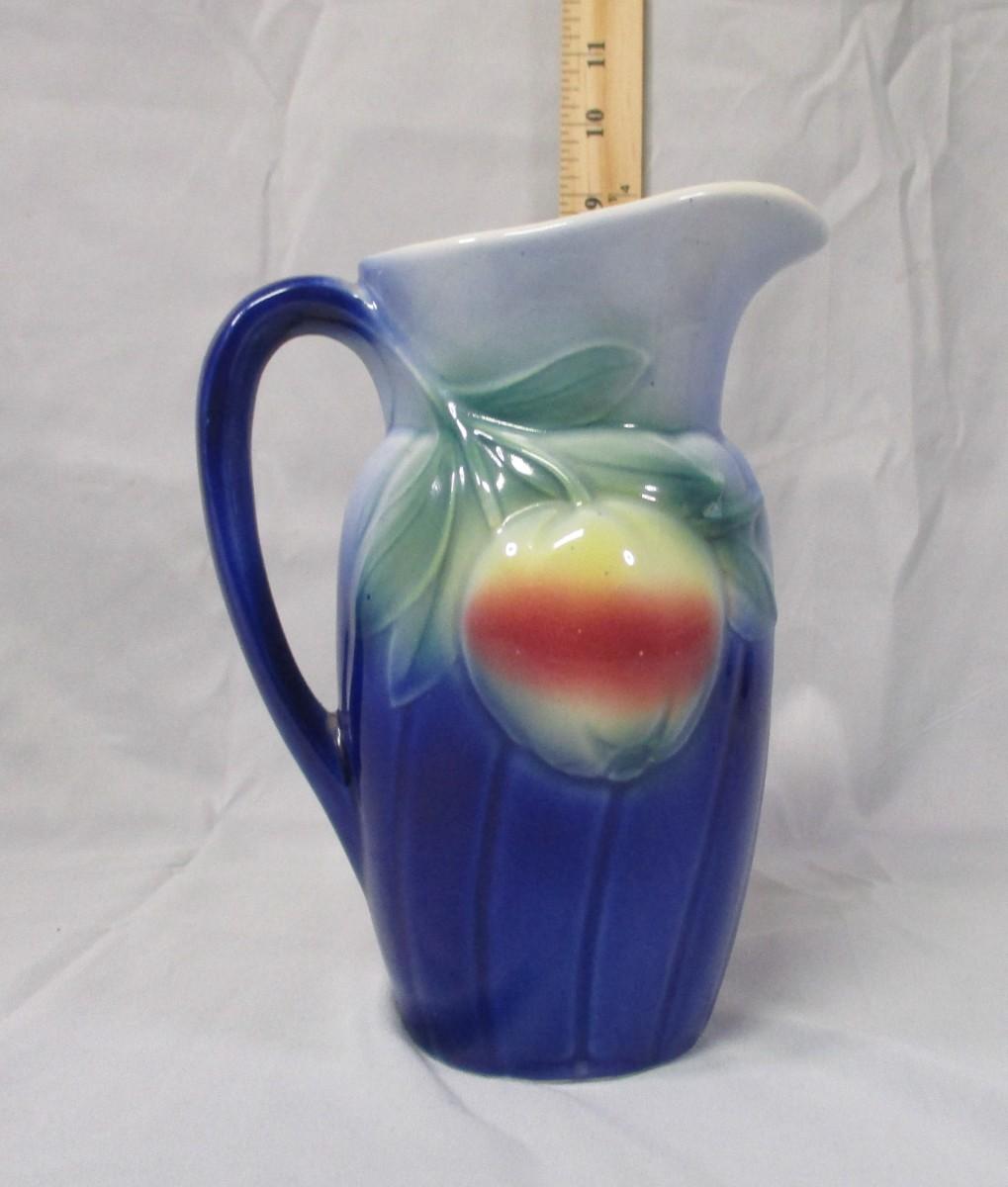 This pitcher is in good condition with only a small imperfection in the paint and some light crazing. It stands at 8"