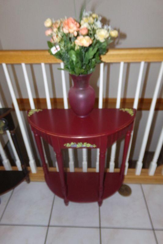 HAS A RED TINT COLOR, MEASURES 24"x10"x26", INCLUDES VASE WITH SILK FLOWERS