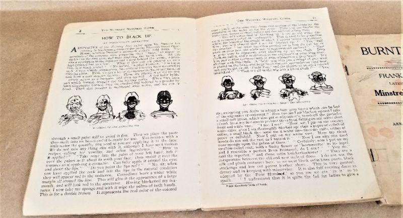 Totally politically incorrect. Original guides to how to put on a blackface minstrel show. All original, not reprints. Burnt Cork is missing the cover, but is complete. Note the pages on "blacking up." SCARCE. Price is for the pair.