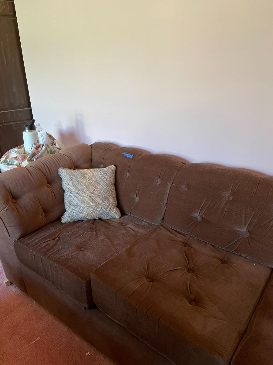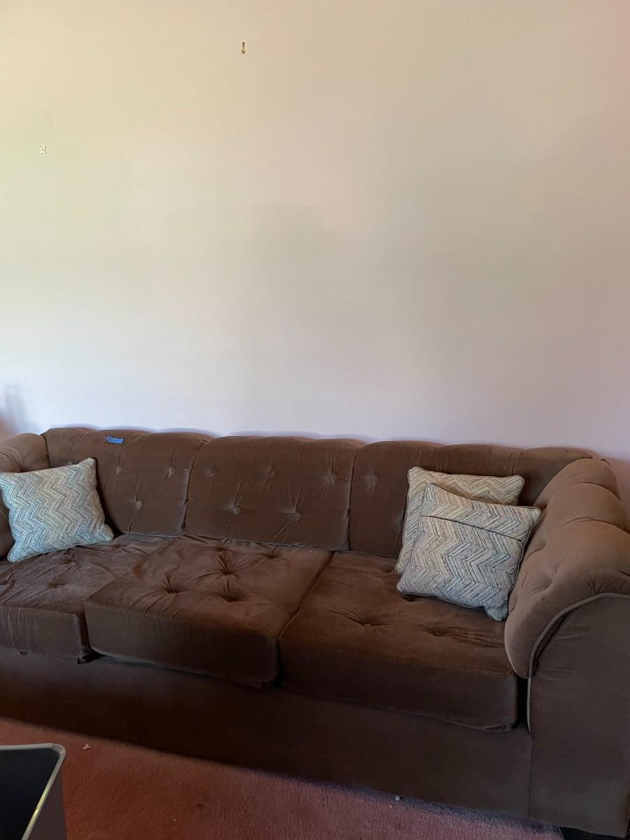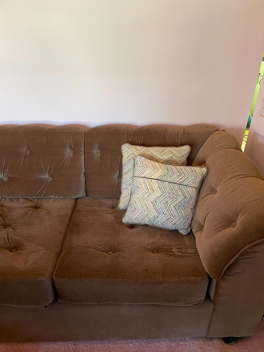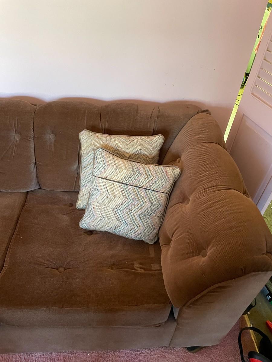 First couch is a sleeper ( 7 ft long, 29 in. tall, 34 in. wide) other couch is (90 in. long, 29 in. tall, 34 in. wide) includes pillows.