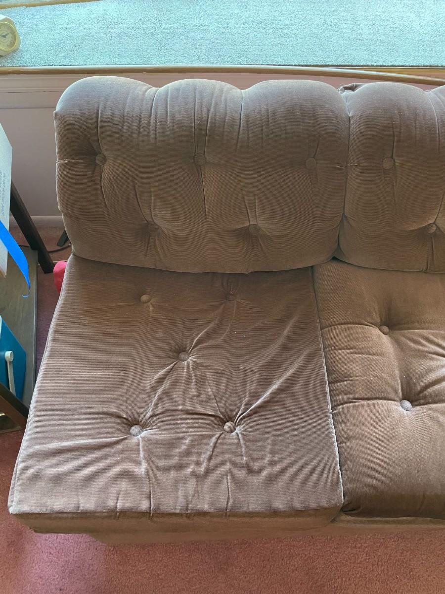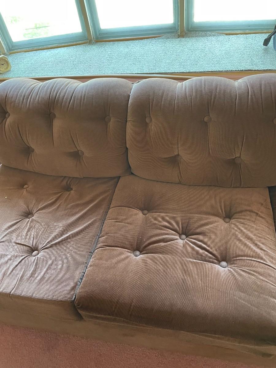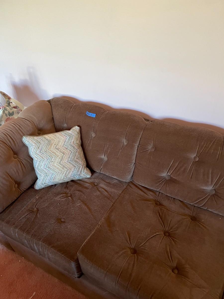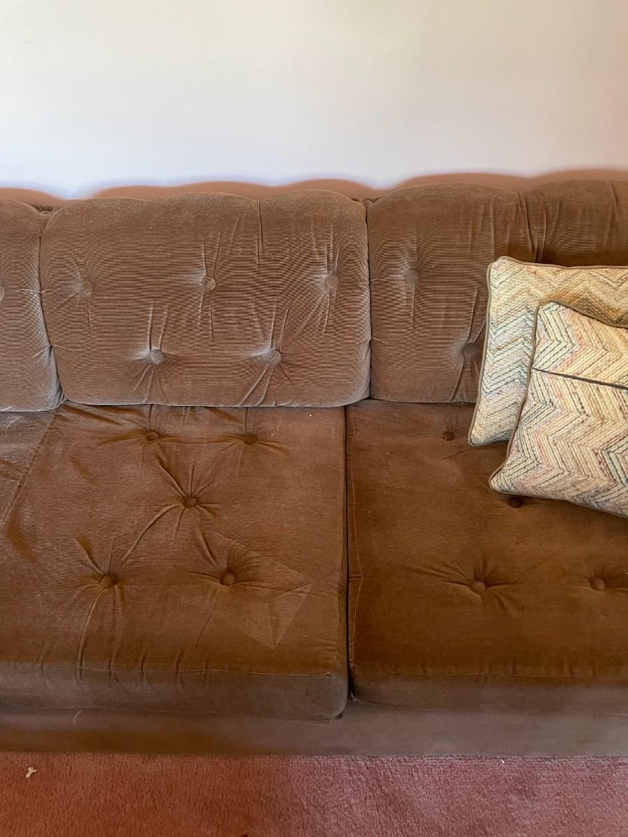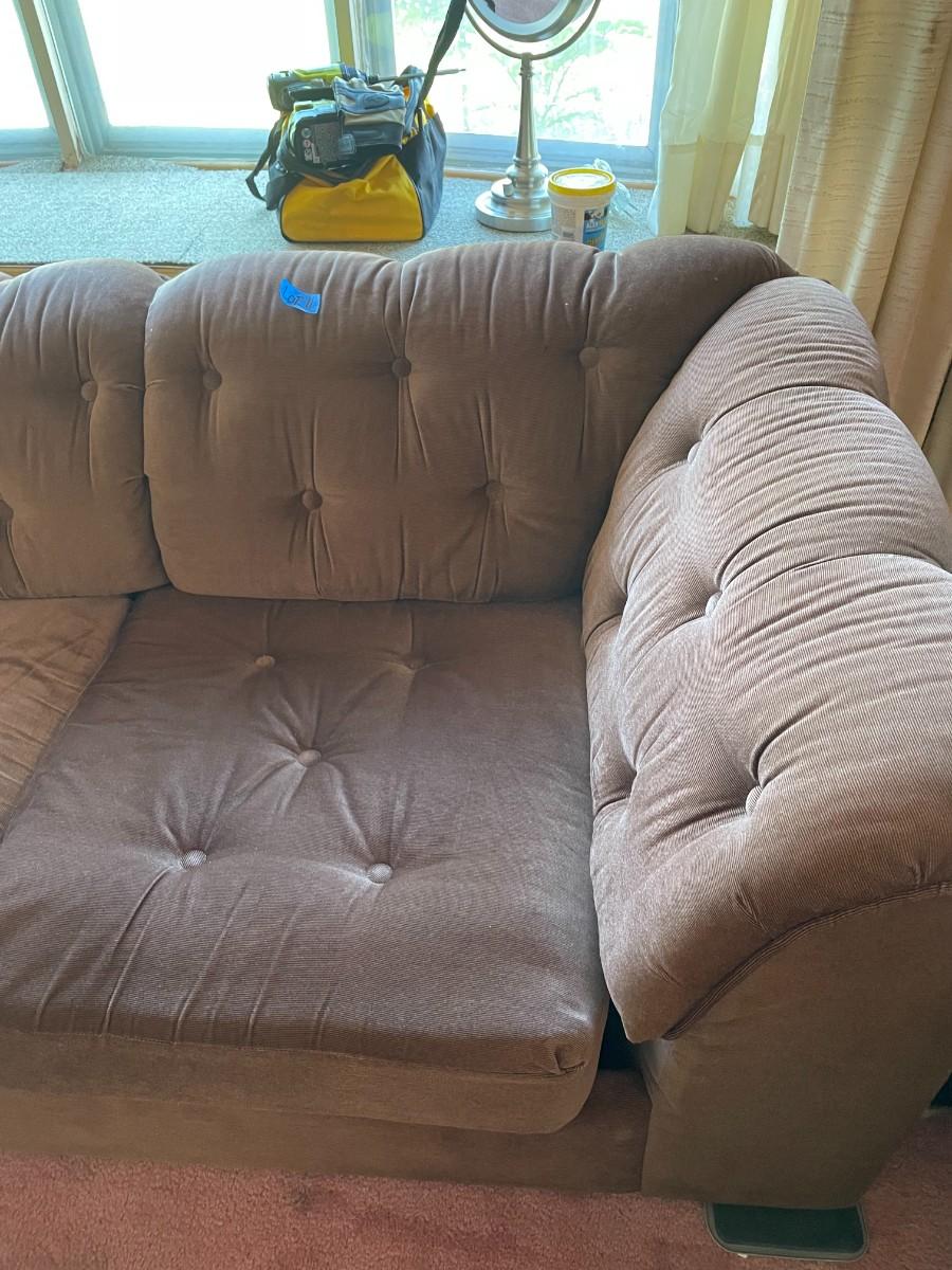 First couch is a sleeper ( 7 ft long, 29 in. tall, 34 in. wide) other couch is (90 in. long, 29 in. tall, 34 in. wide) includes pillows.