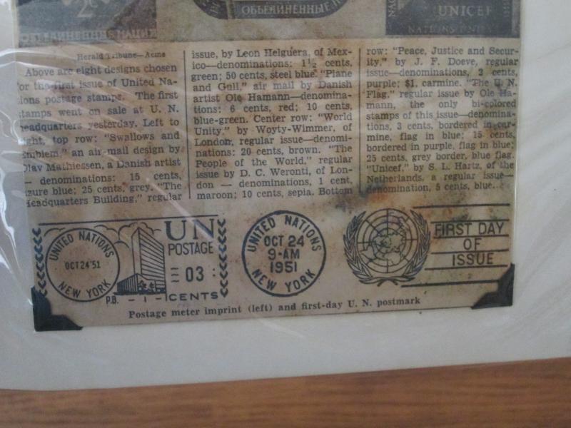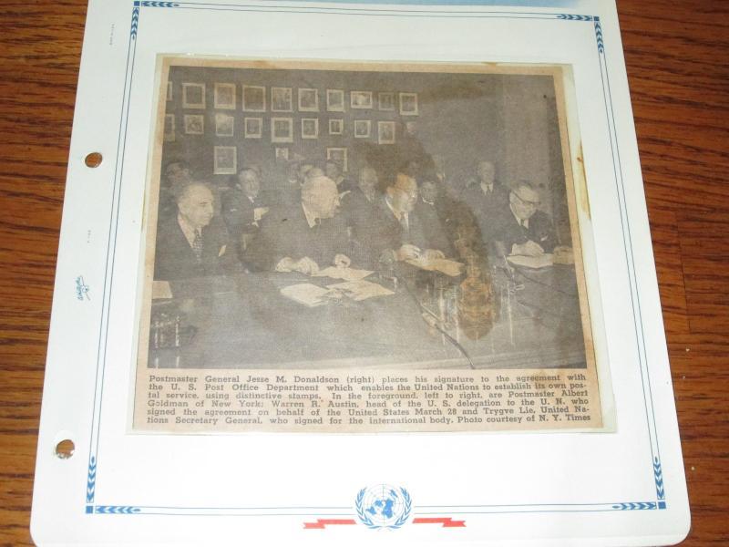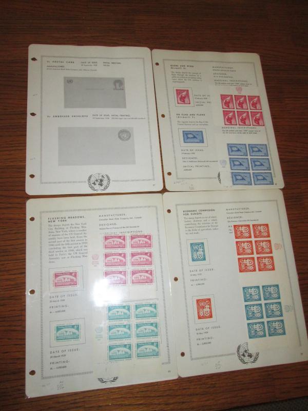 2 1953 United nations envelopes. NY # 1 - 21, 23 - 27, 39 - 52. 55 - 87. Plus postal cards, C 1 - 7, UX1, UC1, UX3. Full sheets of # 47 and #48; Some of these stamps have been hinged by original owner. Please review pictures for complete listing of stamps