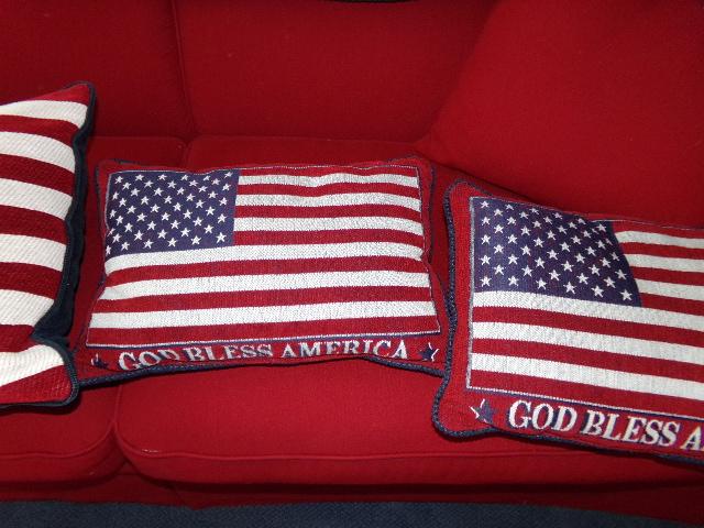 THIS IS A VERY NICE LAZY BOY COUCH MADE FOR AMERICA. COMES WITH THE AMERICAN FLAG PILLOWS AND THROW. IN GREAT CONDITION.