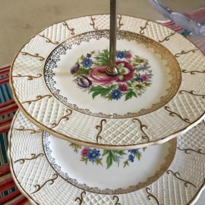 Beautiful vintage tiered platter. Able to dissemble for easy storage