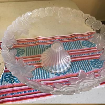 Lot 11: Vintage English Tiered Platter and Crystal Rose Etched Cake/Cookie Platter