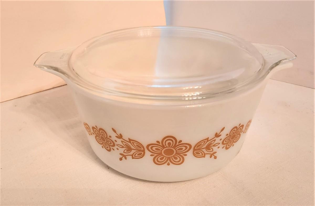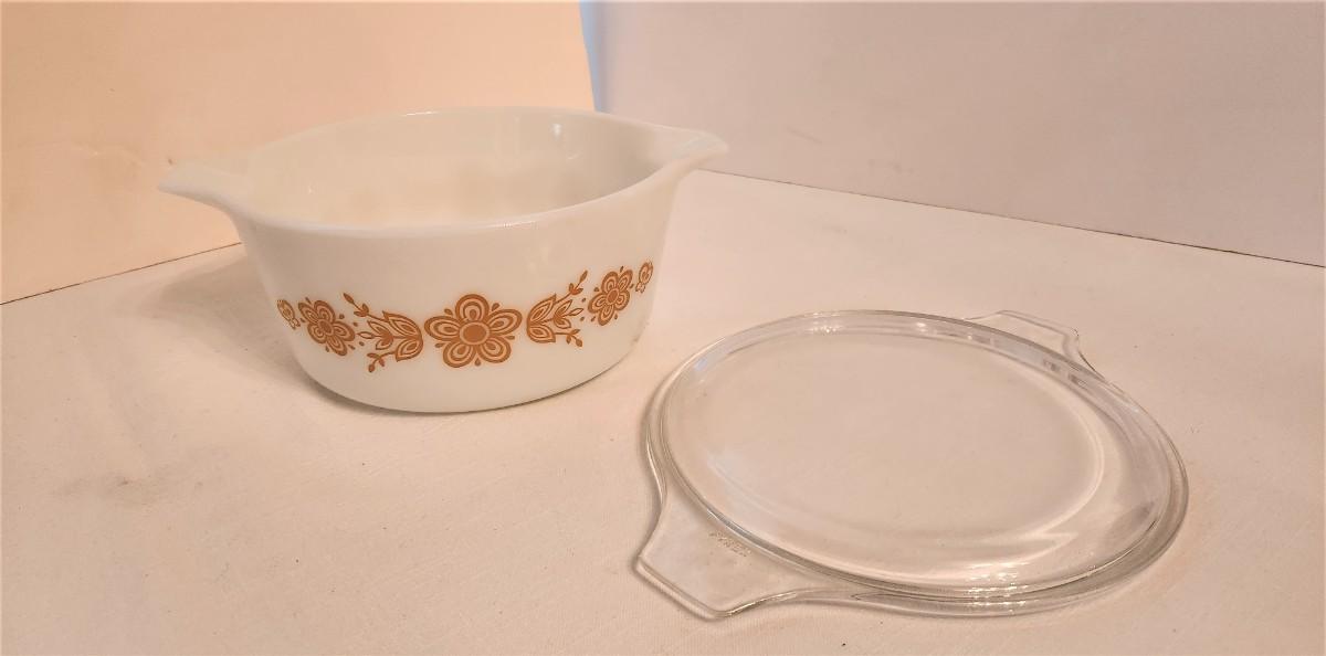 Lot #11  Vintage PYREX Dish with lid - Butterfly Gold