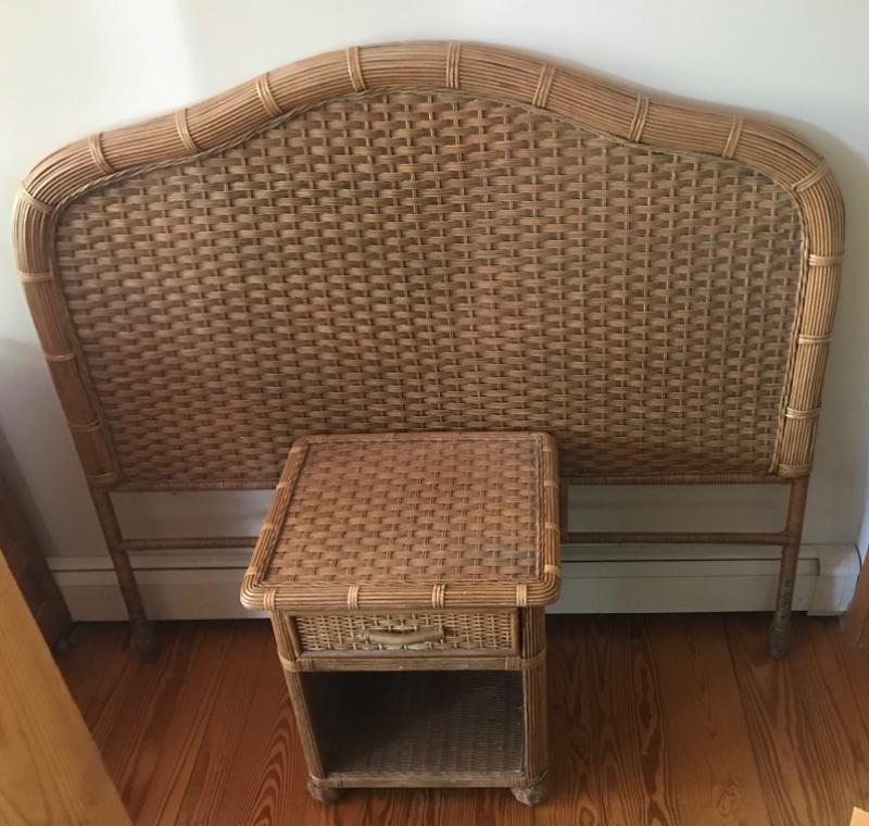 Lot #11 Wicker Headboard and Nightstand