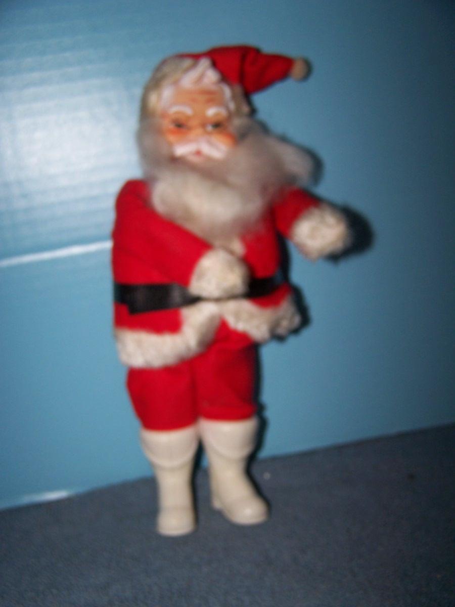 THIS IS A WONDERFUL VINTAGE MCM SANTA DOLL/FIGURE!!! FACE/BOOTS ARE PLASTIC.. 10 1/2'' TALL.. LIGHT WEAR...