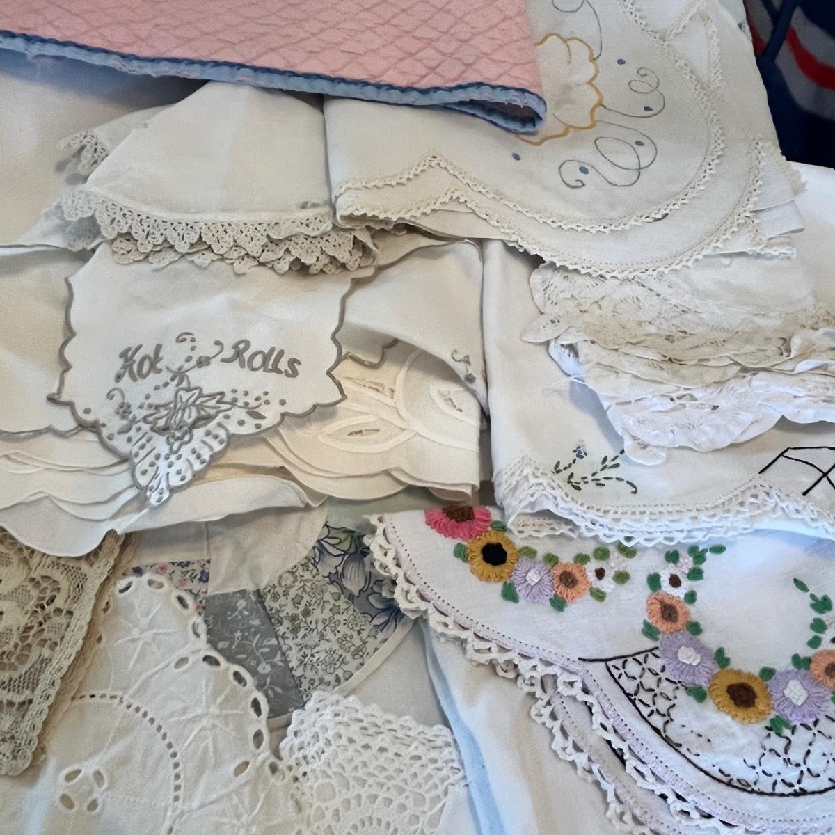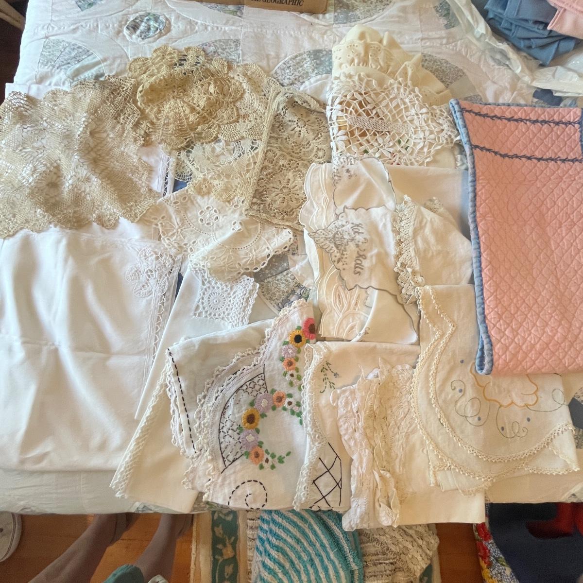 8. Sizes are approximate, you can estimate as our lot number signs are 3.5" long. Also we use an 18" & 36" measuring stick.  We try on certain things to do actual measurements. No guarantees on actual sizes, we try our best!