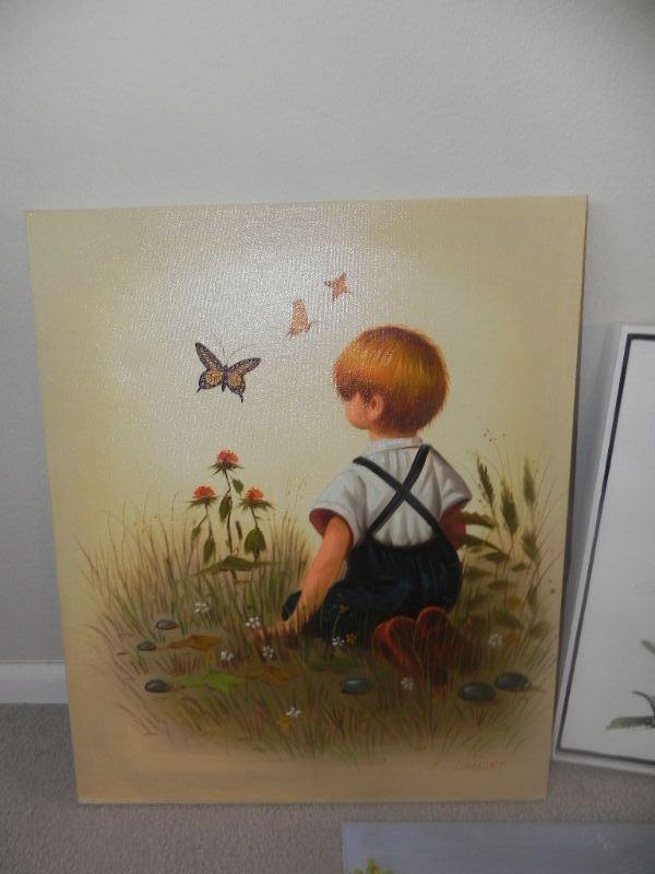 BOY W/BUTTERFLIES SIGNED J. DANSET,