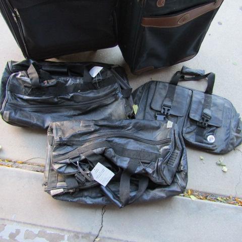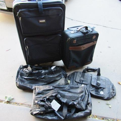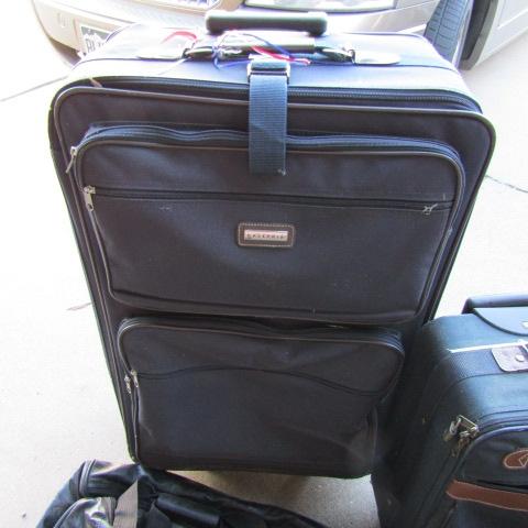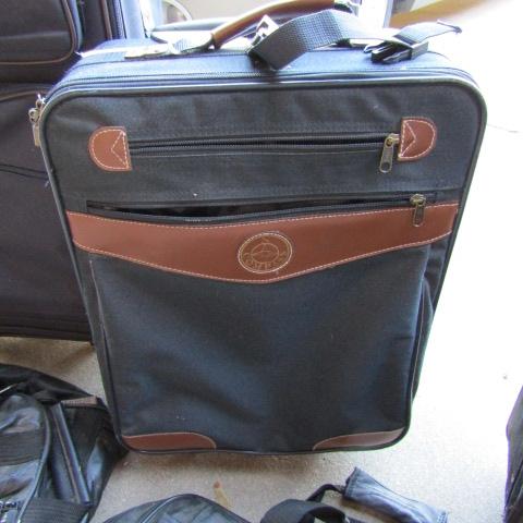 VARIETY OF LUGGAGE PIECES AND A SUITCASE CARRIER