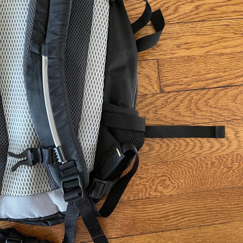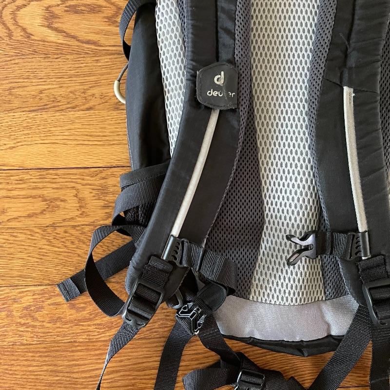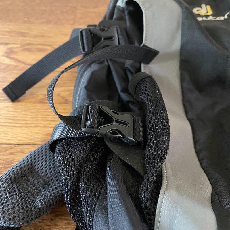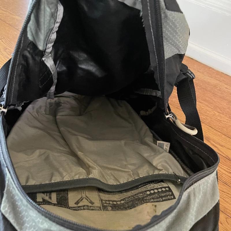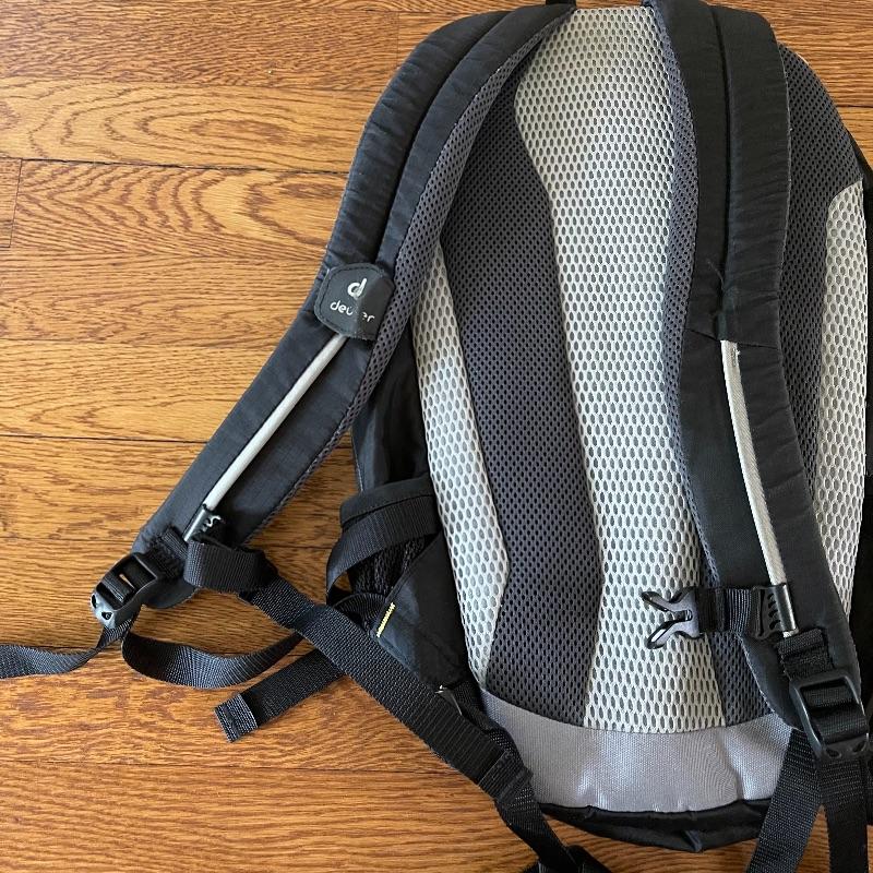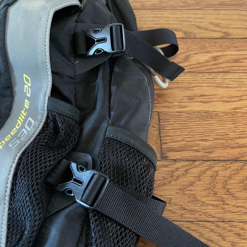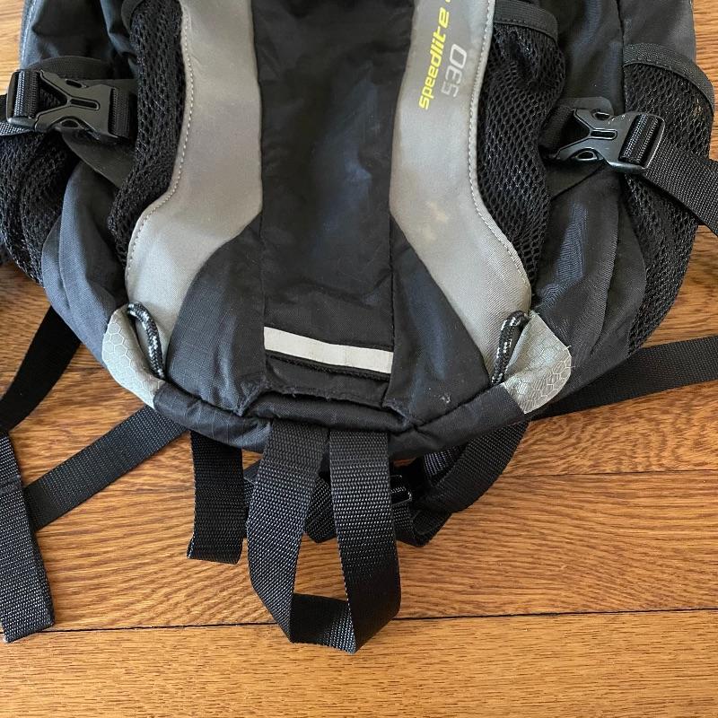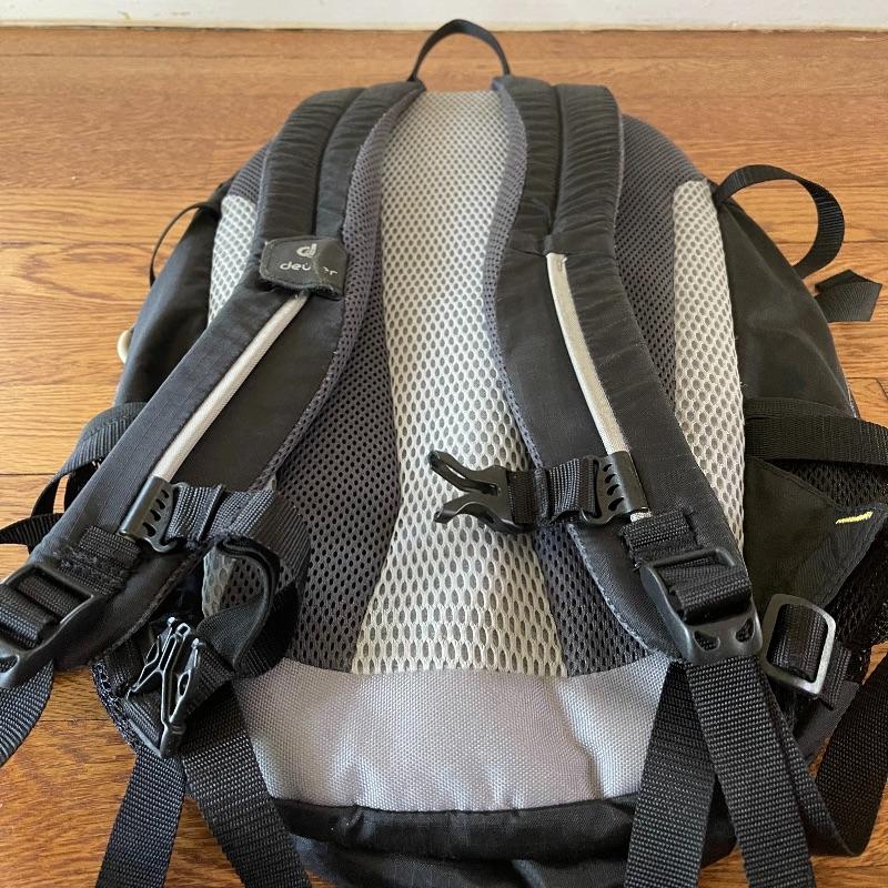 Women’s outdoor gear, includes a backpack, two bucket hats, one vest, and three fleece jackets. Small and medium sizes. The backpack is a Deuter speedlite 20 53. One of the bucket hats is a Teva and the other is from Canada. The jackets and vest are Talbots, Land’s End, White Sierra, and Eddie Bauer.