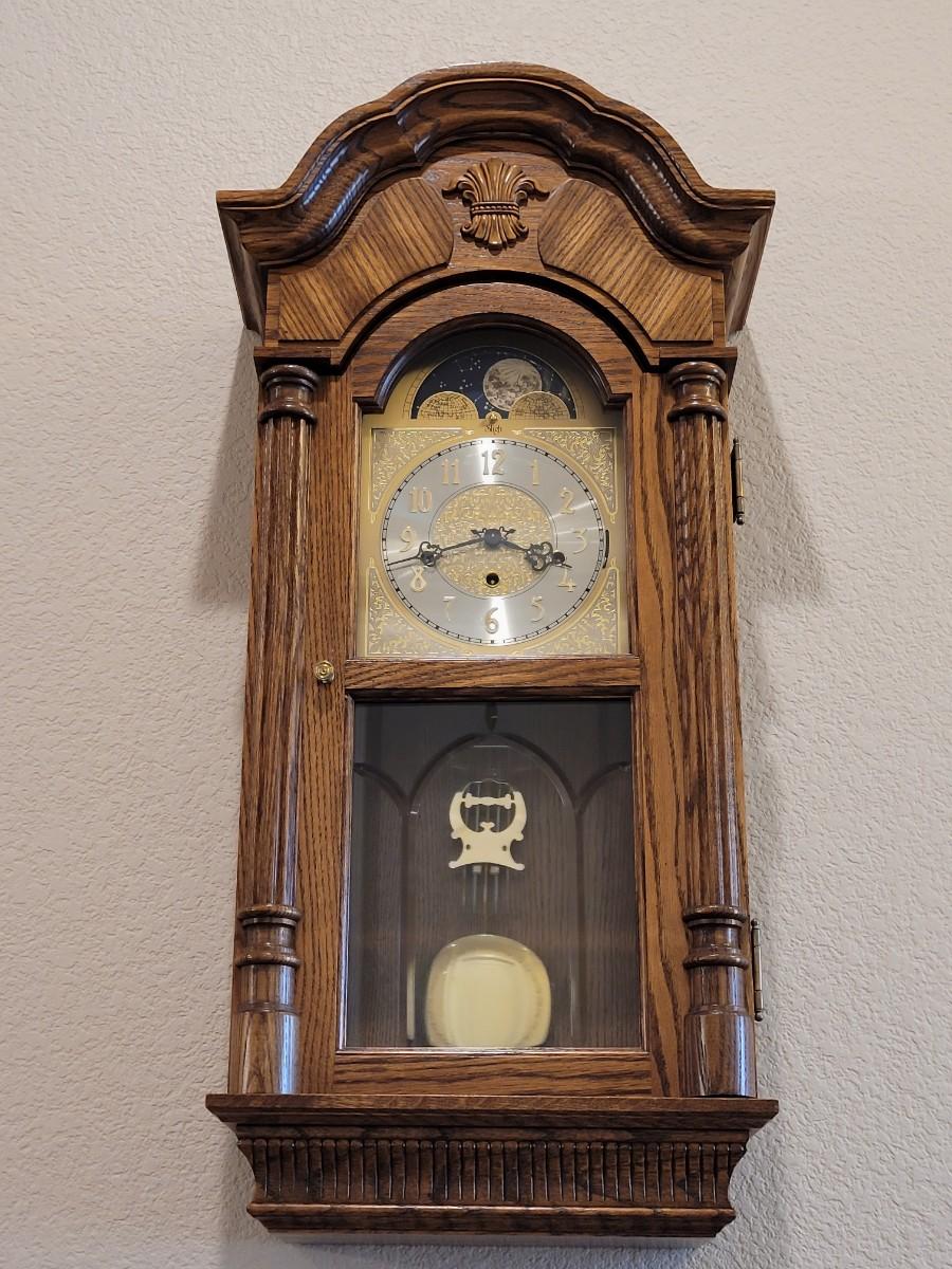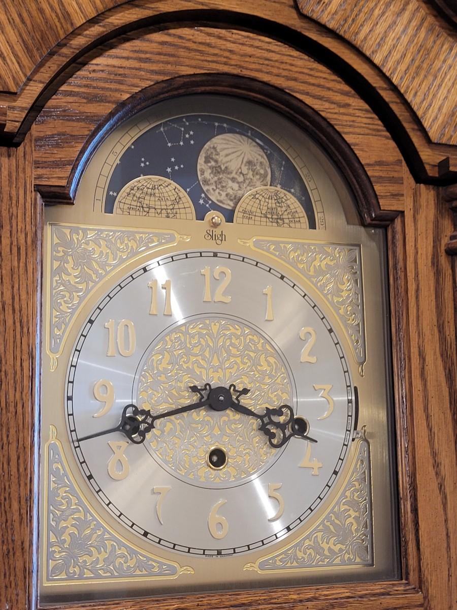 Lot 110: Sligh Moon Phase Wall Clock (Works & Chimes Great)